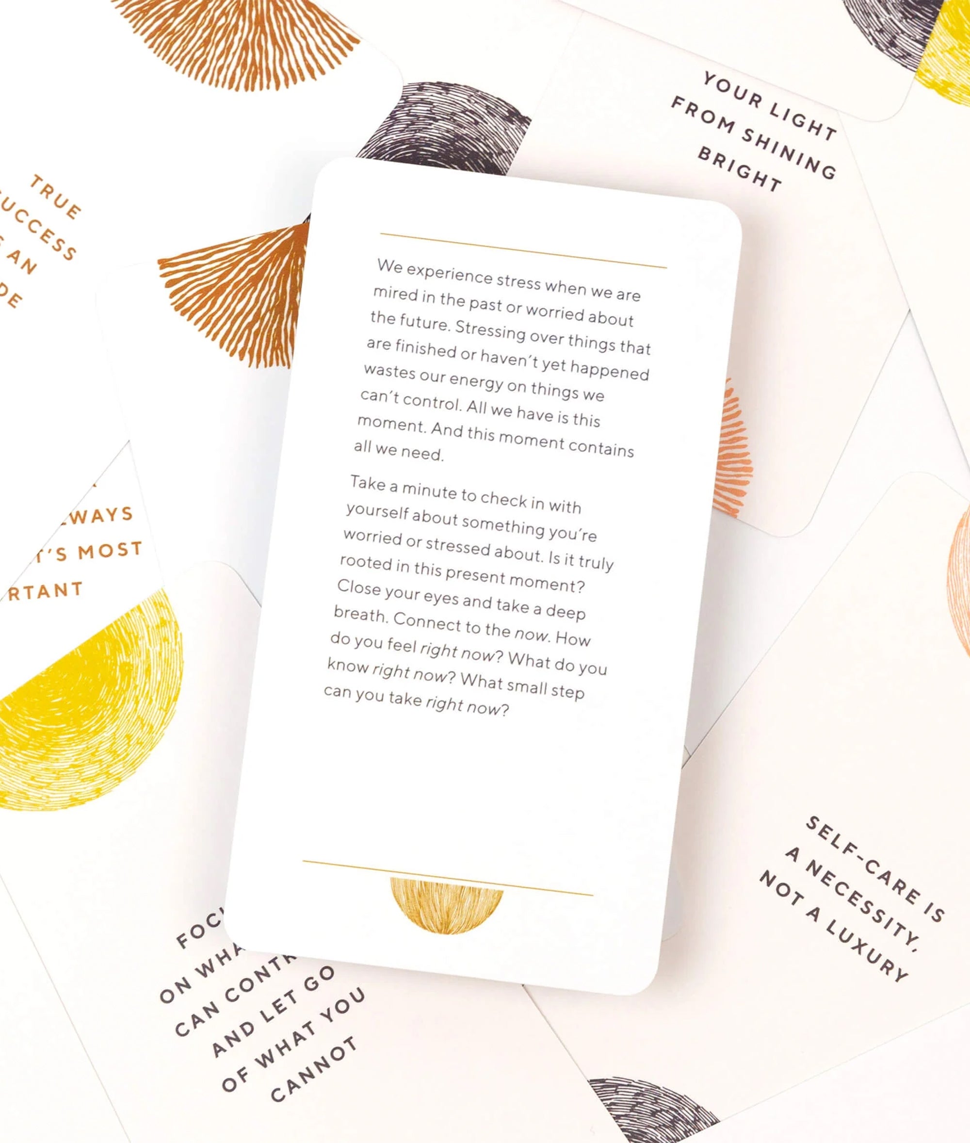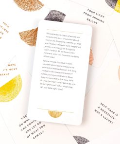 For anyone overwhelmed by the stresses of daily life, this deck is a simple tool to promote calm and well-being. Here are 65 soothing cards, each featuring an encouraging mantra on the front and a short practice on the back, including exercises for mindfulness, self-care, awareness, grounding, gratitude, and more. Users can pull one card each morning to center themselves, or pick a few at a time to set a bigger intention for the week. Presented in a lovely portable package with foil stamping, Calm the Chaos Cards make it easy to foster moments of peace and clarity, anytime and anywhere. A note from our creative director Barbara: Enjoy a moment of reflection and love for yourself every day. When I draw a card, I always immediately feel how I should read it in relation to my life. Put them in a place where you visit every day and make it a ritual. Dimensions: 15.4 cm x 9.3 cm x 3.9 cm.|