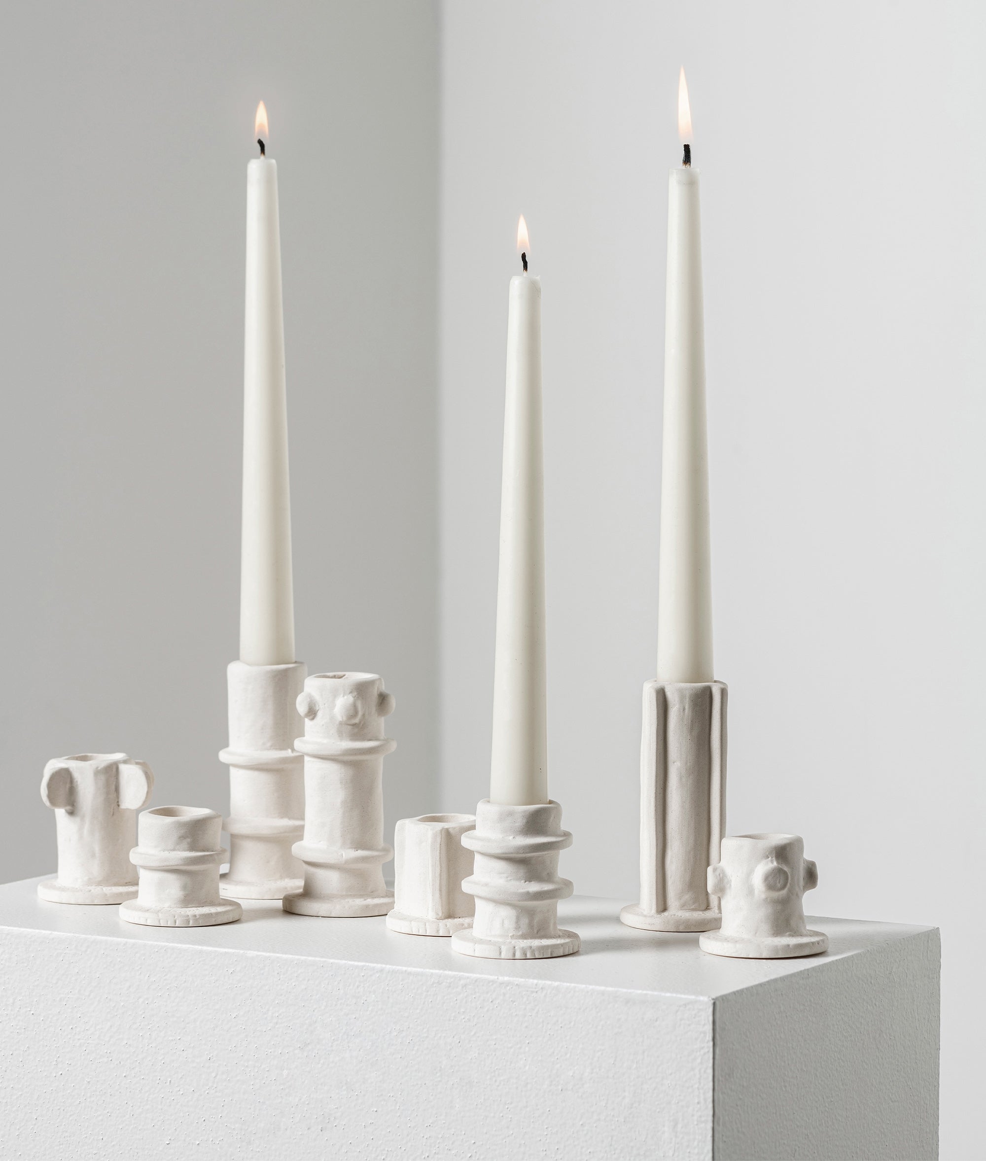 Set of 3 Serax 01 Molly candle holders, designed by Marie Michielssen. The earthenware candle holders are matt on the outside and glazed on the inside. The candle holders are finished by hand, making each piece unique. They are a graphic eye-catcher in any room. Dimensions: L 5 W 5 H 4.5 CM.|