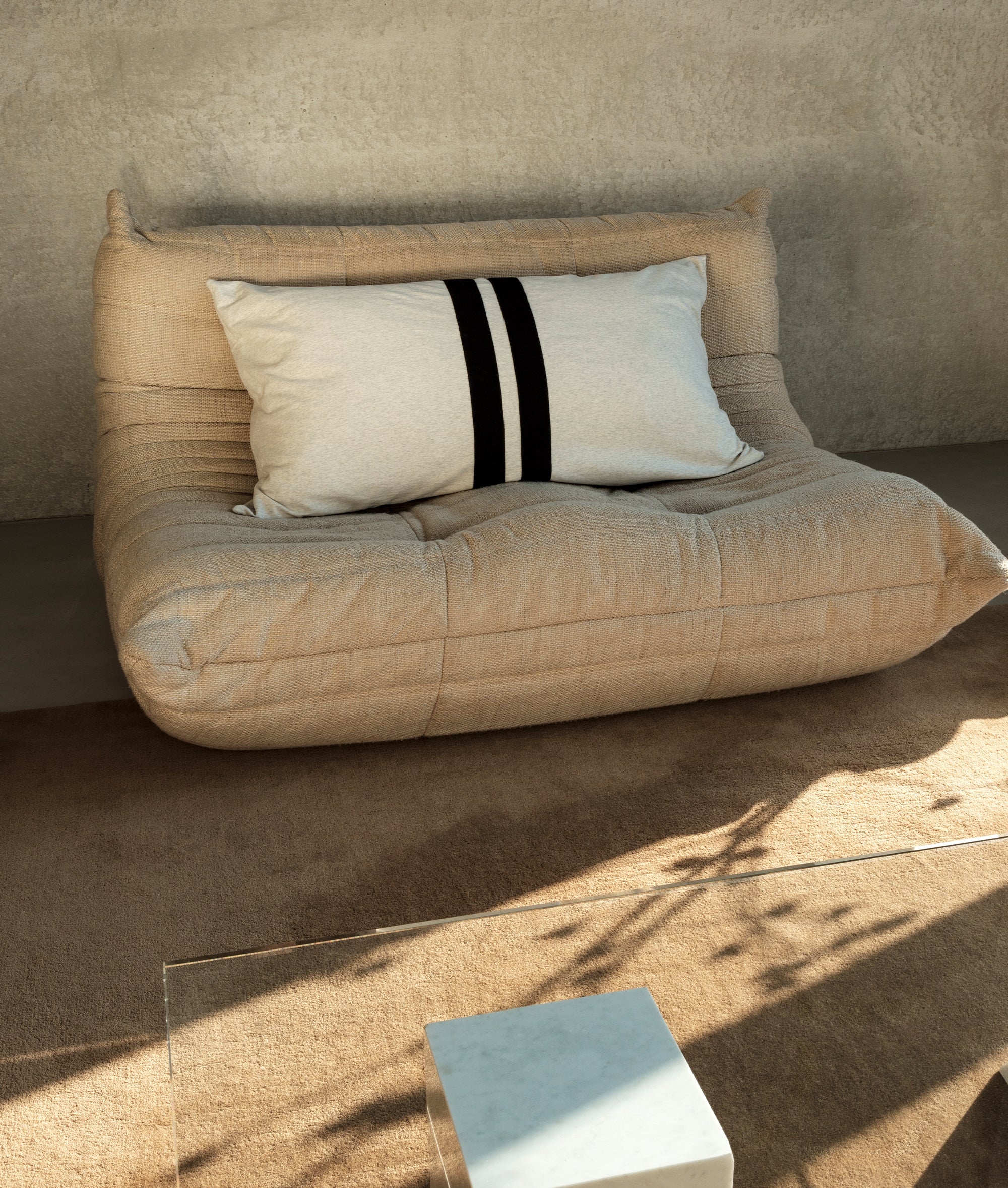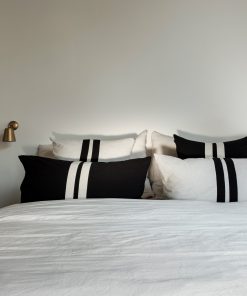 Rectangular cushion cover made from super soft signature 10DAYS babyfleece. Features a zipper, two large vertical herringbone tape stripes on the front and a small label in the side seam. Size: 50 cm x 90 cm.|