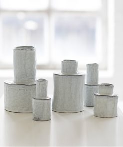 Small Serax vase, made of glazed stoneware. Designed by Marie Michielssen. The white Héléna vase stands out because of its simple cylinder shape. The handicraft is clearly visible in their unusual shapes. The vases are finished by hand, making each piece unique. Dimensions: L 10 W 10 H 15 CM.|