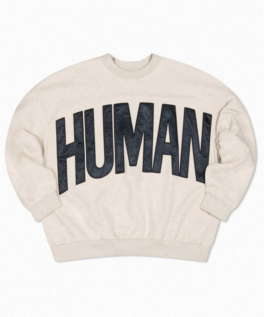 The Original super-oversized fit HUMAN sweater with batwing sleeves, ribbed cuffs, a satin HUMAN patch on the chest and a ’10’ embroidery on the back. Made from soft old school fleece. Unisex.|