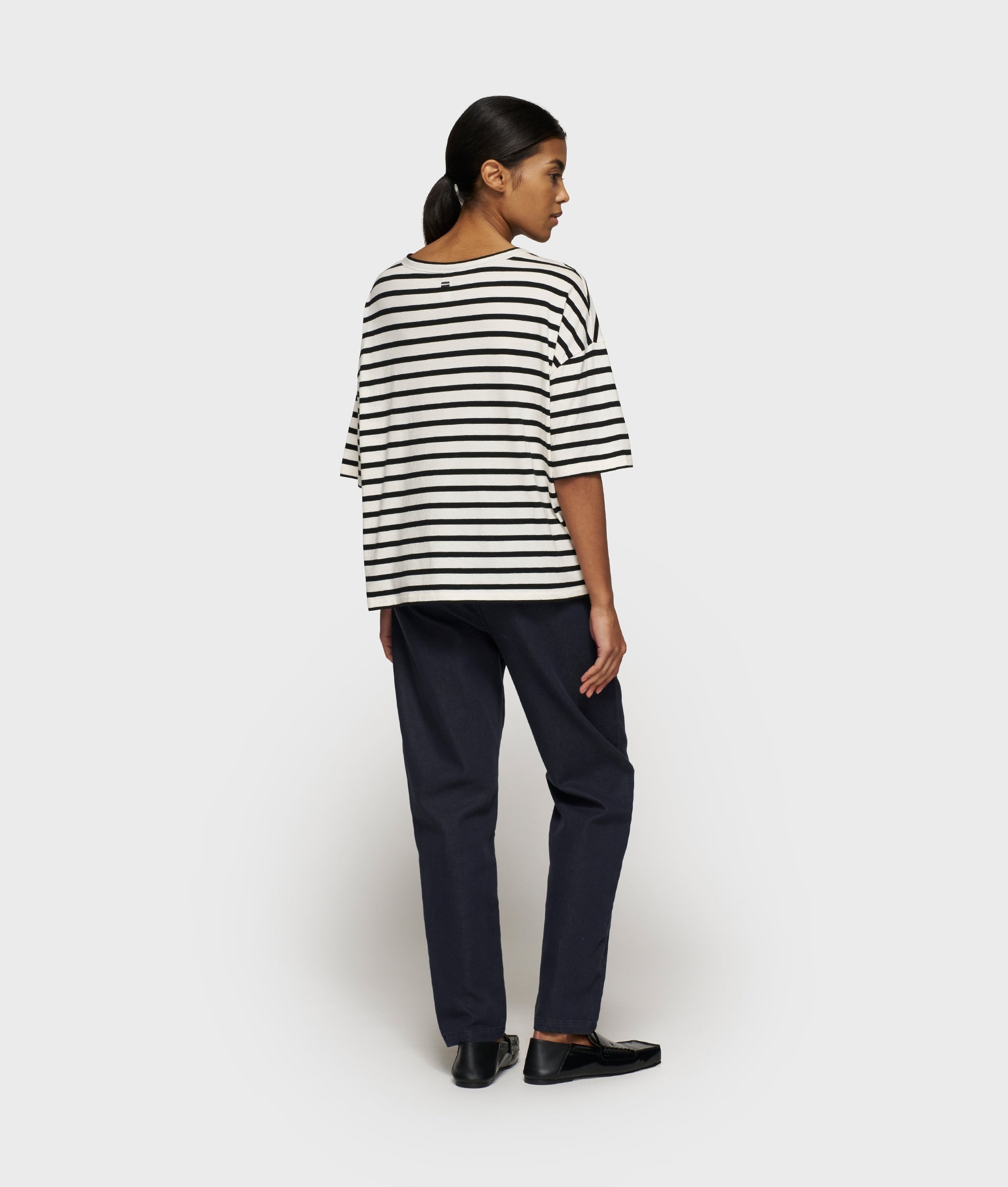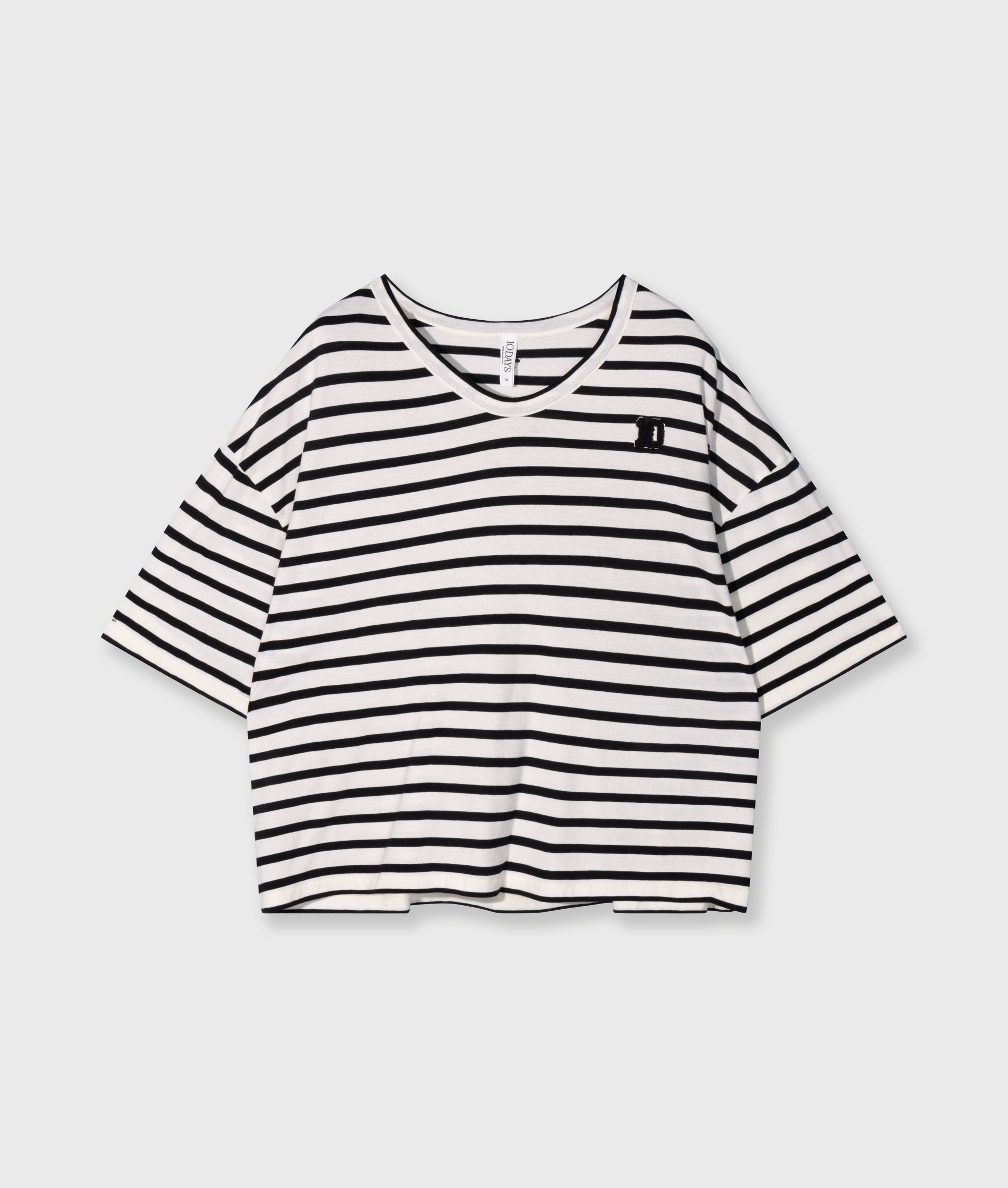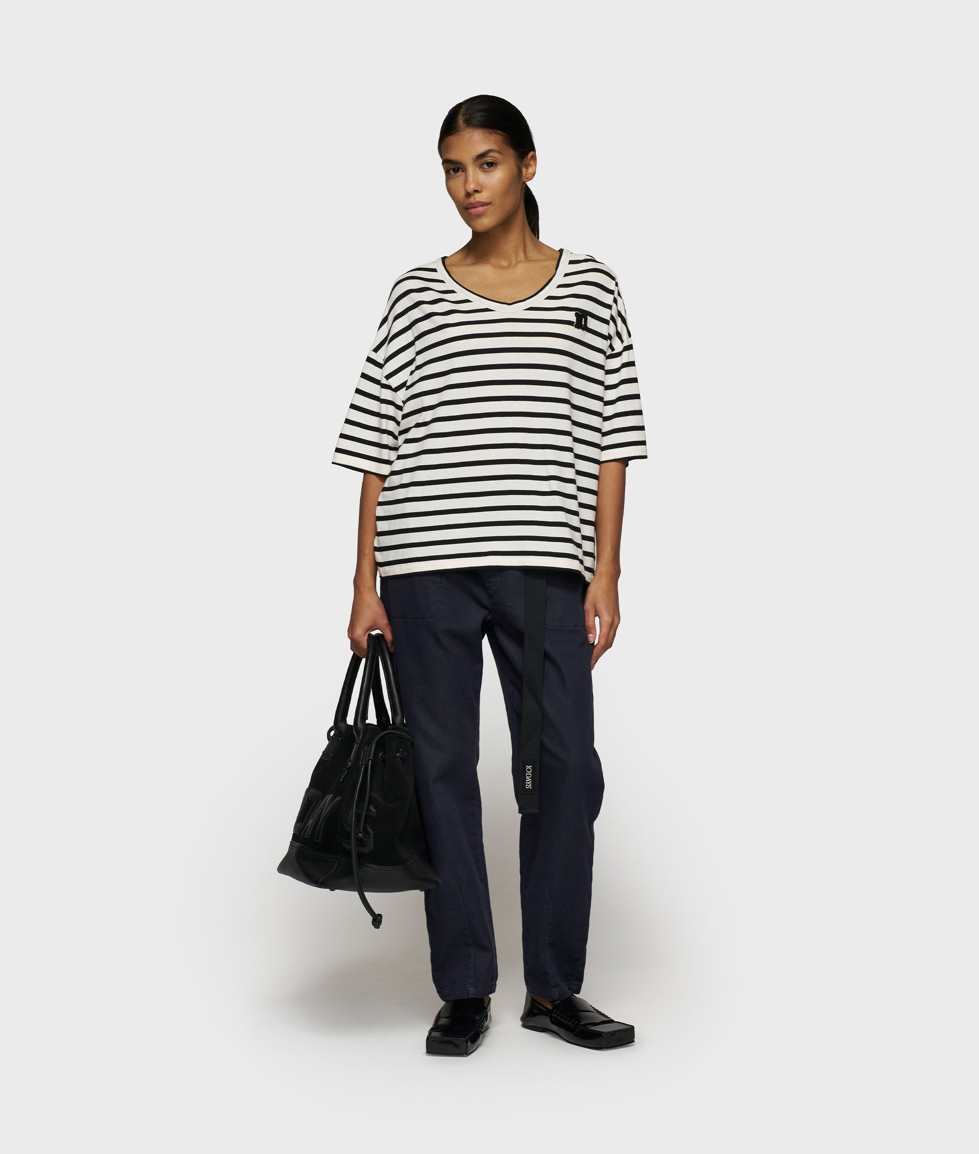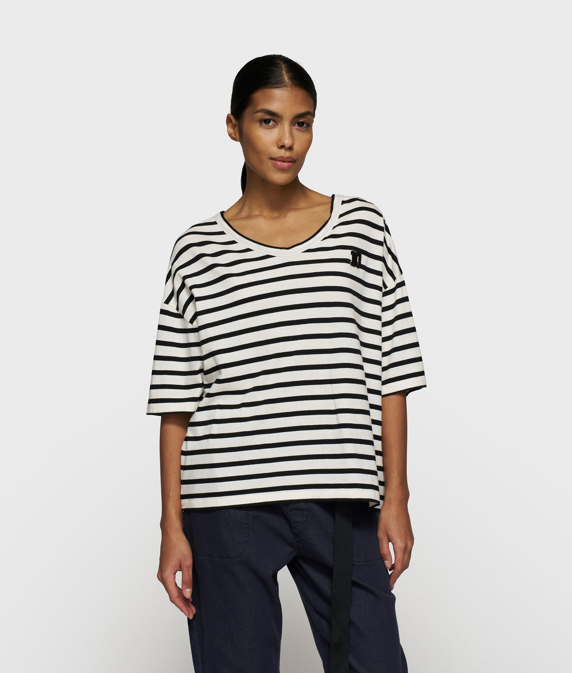 10DAYS Women’s Boxy V-neck Tee | Ecru/black | Ecru & Black