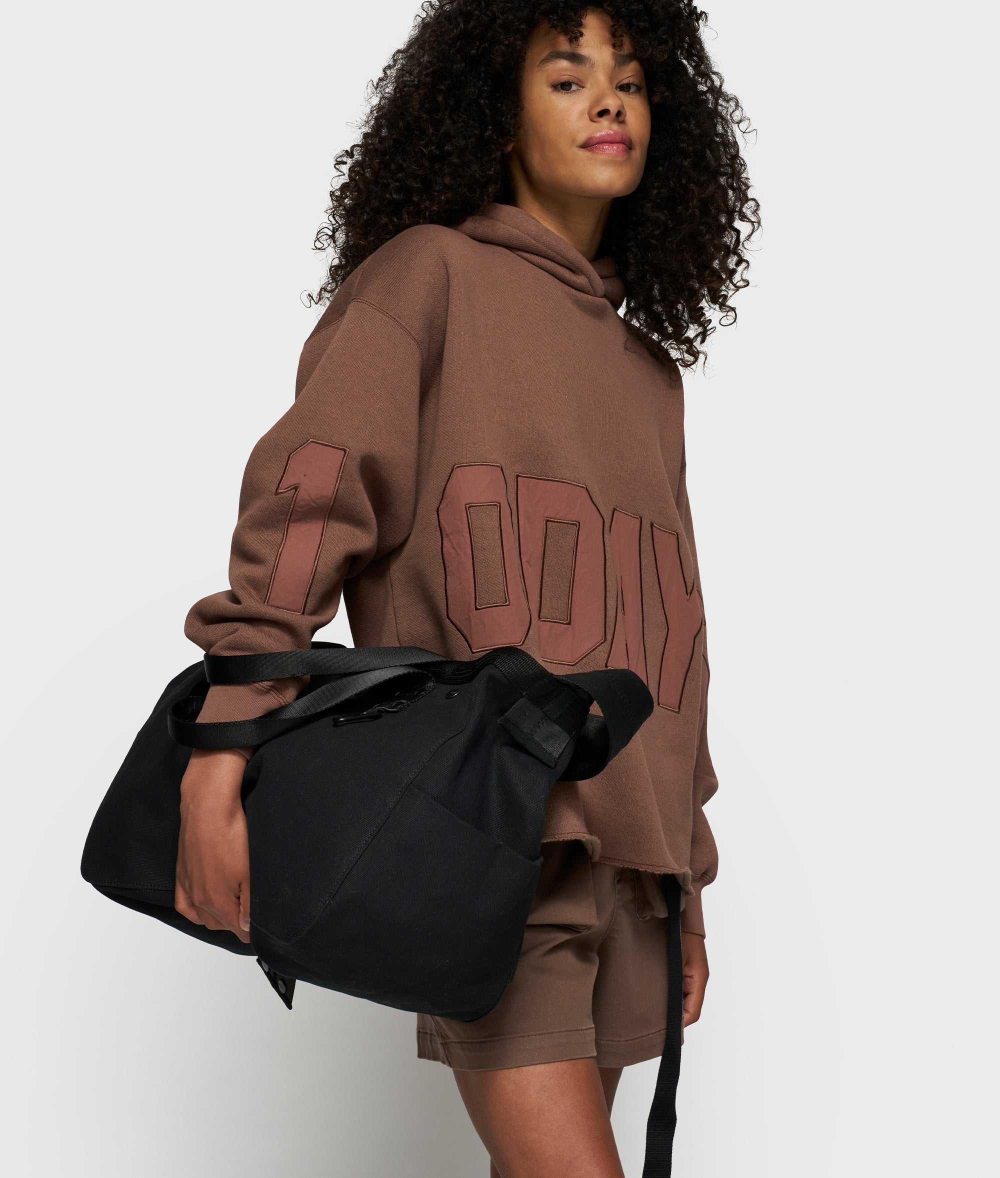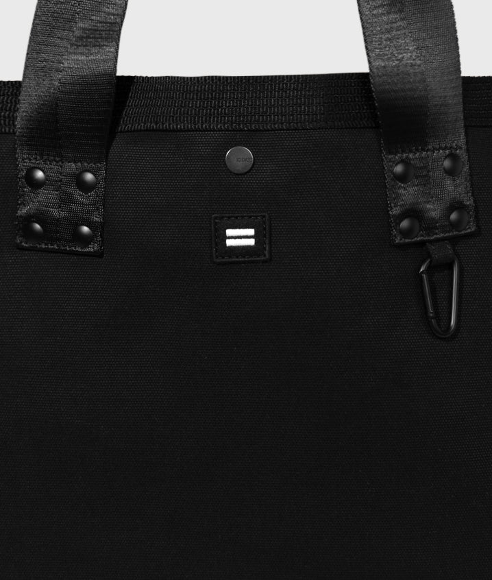 Medium shopper made of thick cotton canvas. Features top handles, an adjustable wide shoulder strap with press studs, side pockets and a trolley holder at the back. Equipped with an inside pocket and water bottle holder on the inside. Finished with a smiley key ring and a mini stripes logo patch on the front. Dimensions: 46 x 60 x 15 cm.|