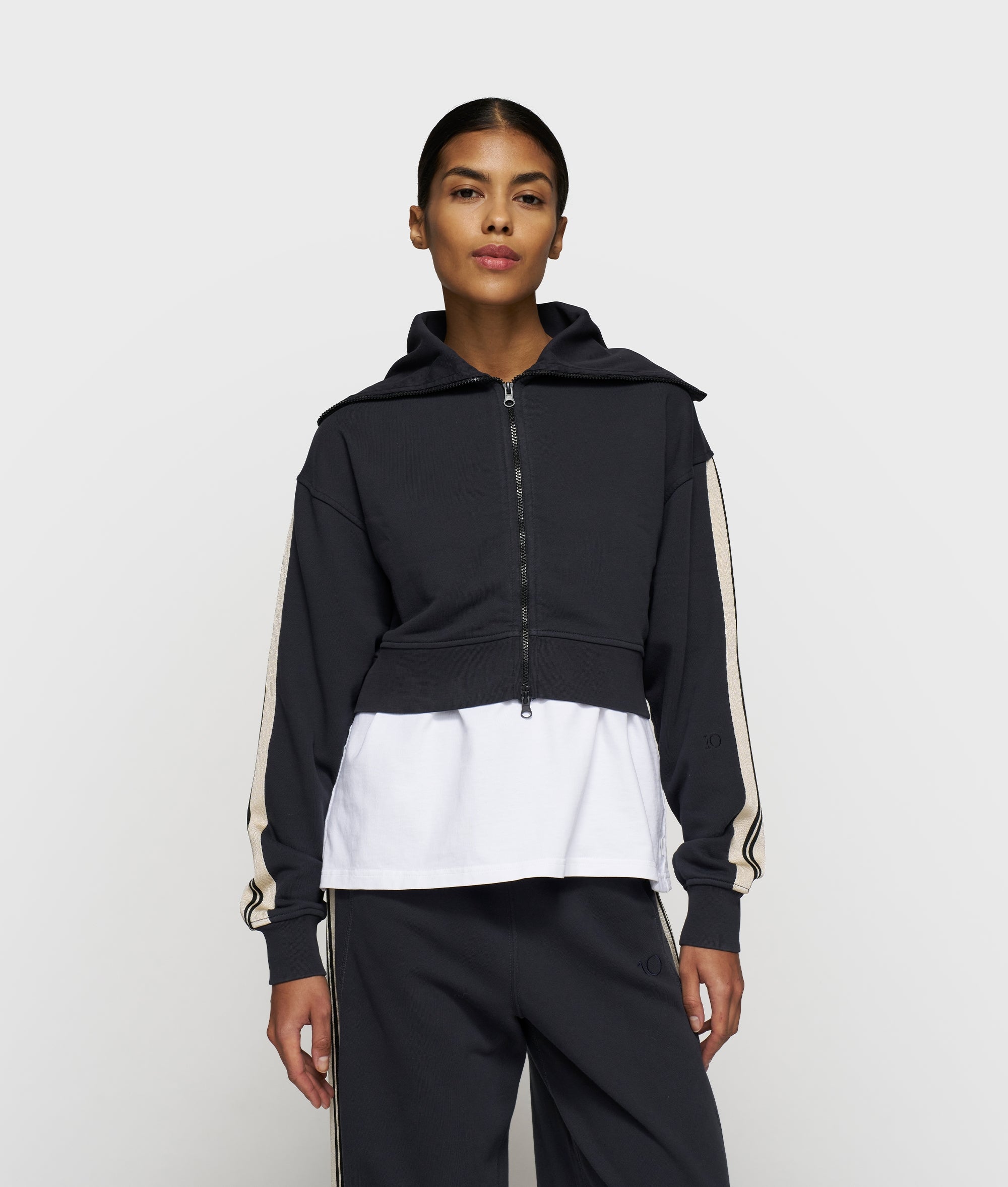 10DAYS Women’s Cropped Zip Cardigan Fleece | Dark Navy | Dark Navy