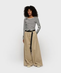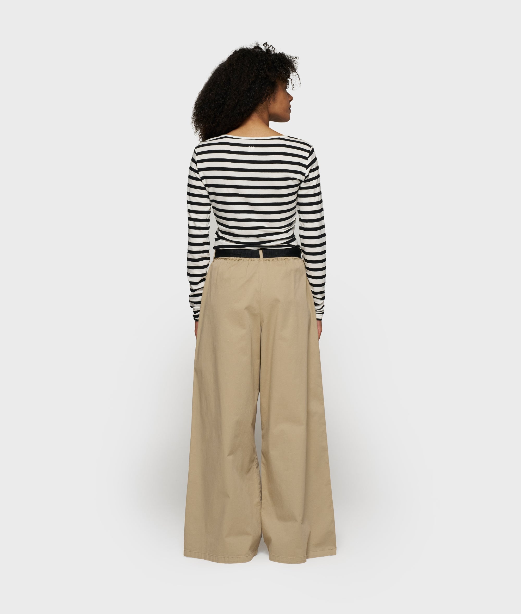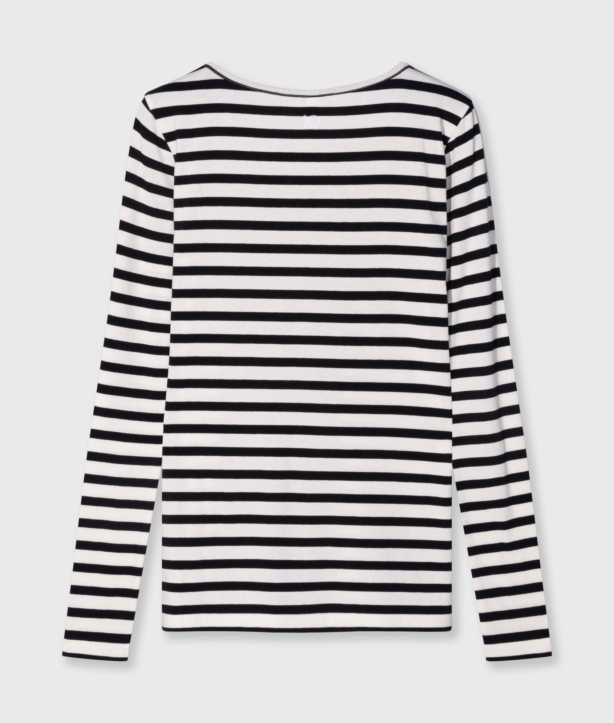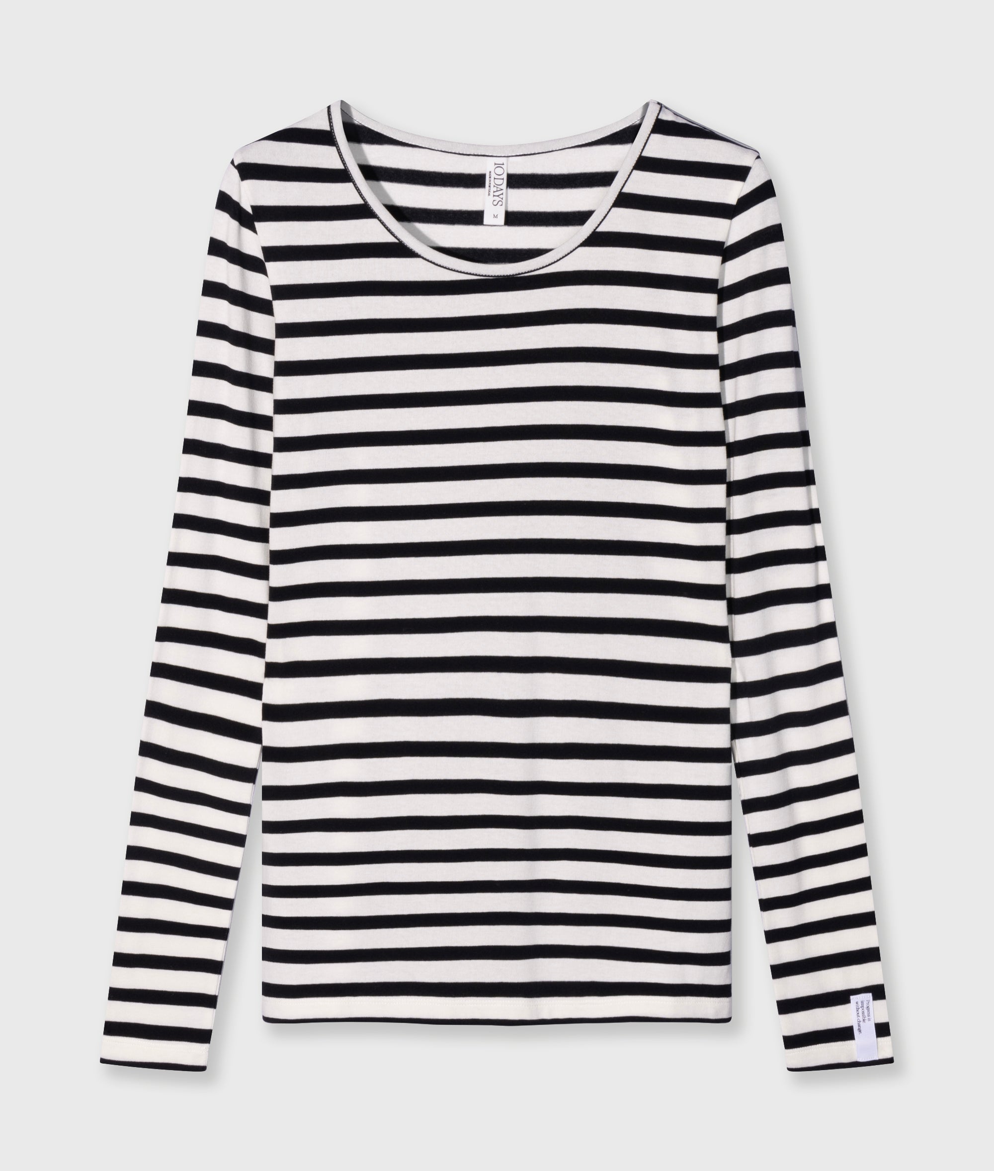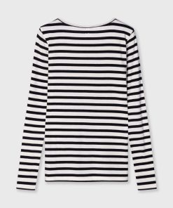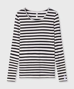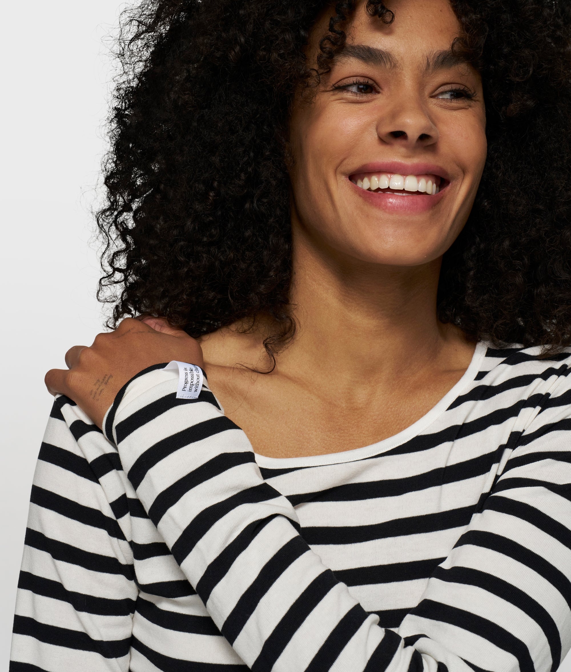 10DAYS Women’s Extra Long Sleeve Tee Modal Stripes | Ecru/black | Ecru & Black