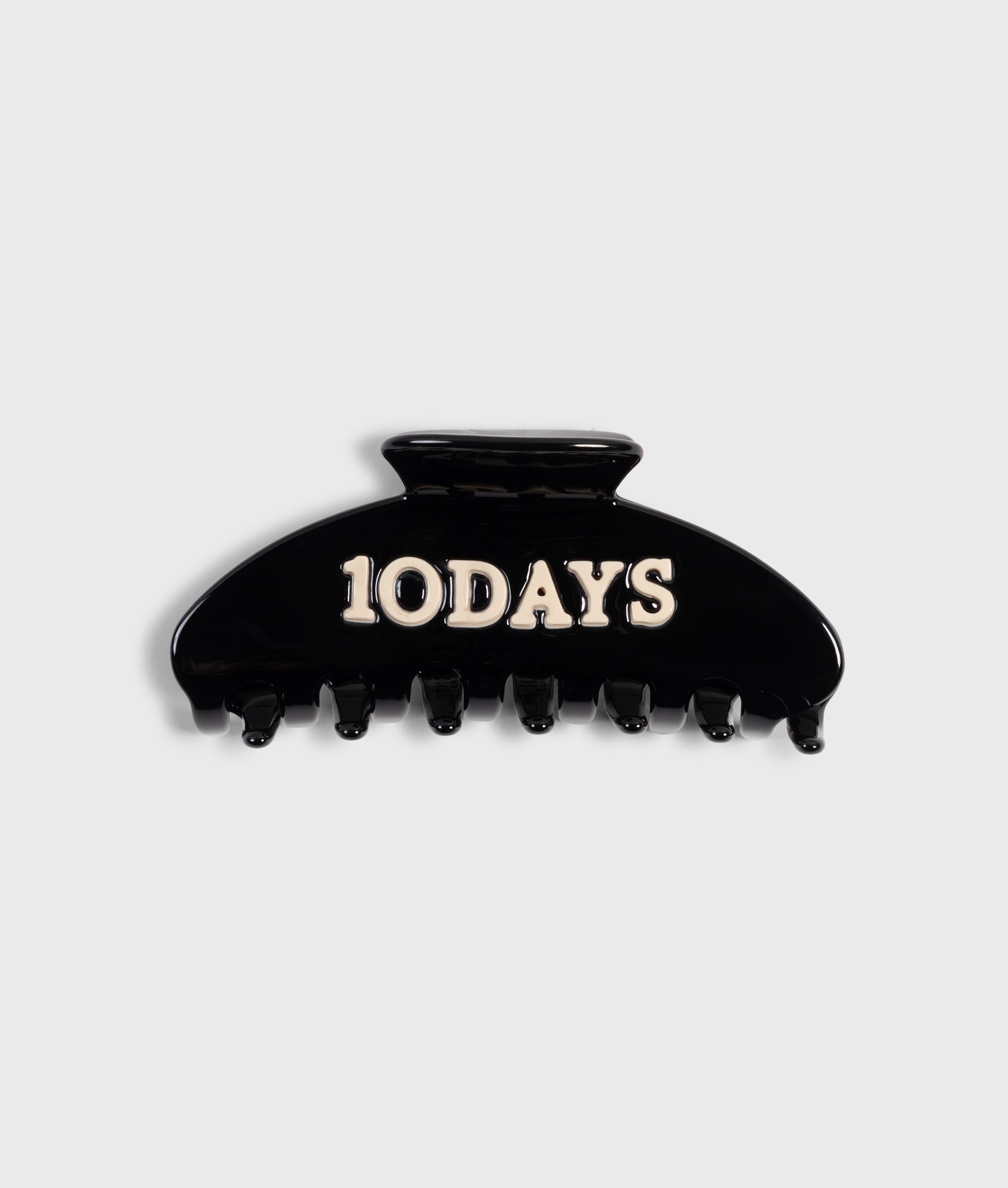 Hair clip made of eco-friendly acetate. Features a 10DAYS logo at the top. Timeless & effortless. The ultimate wellness feeling, all day long. Hair clip length: 10 cm.|