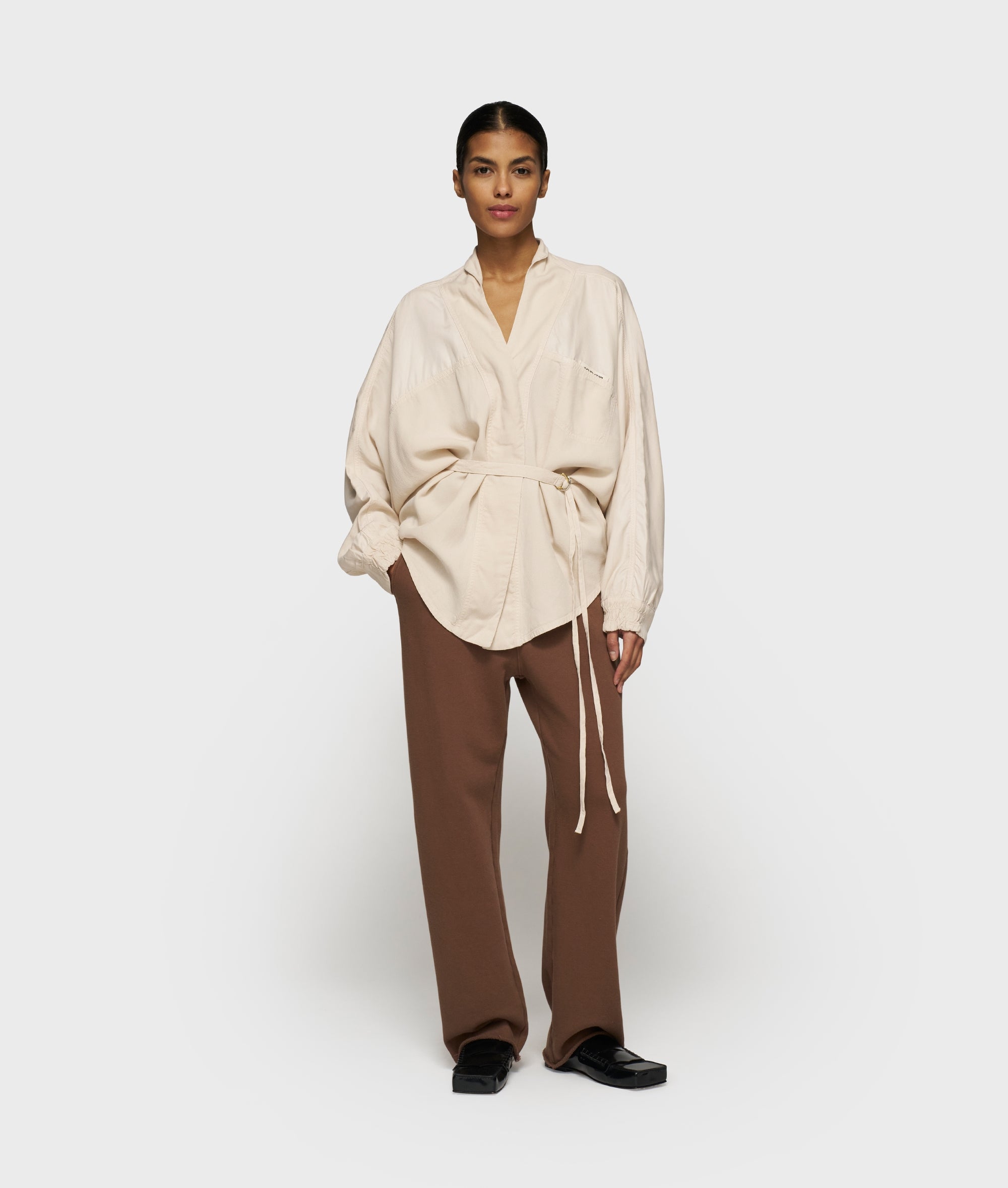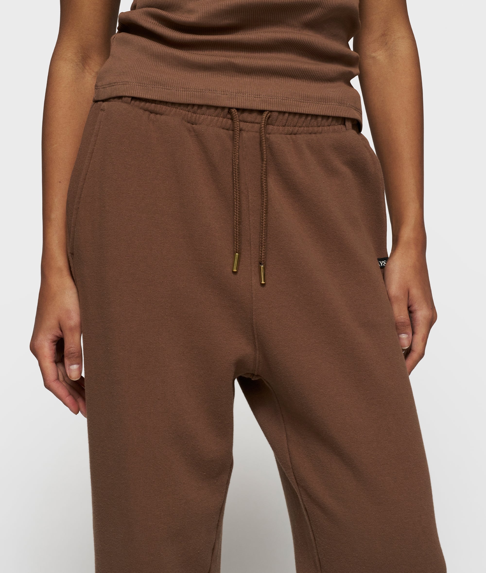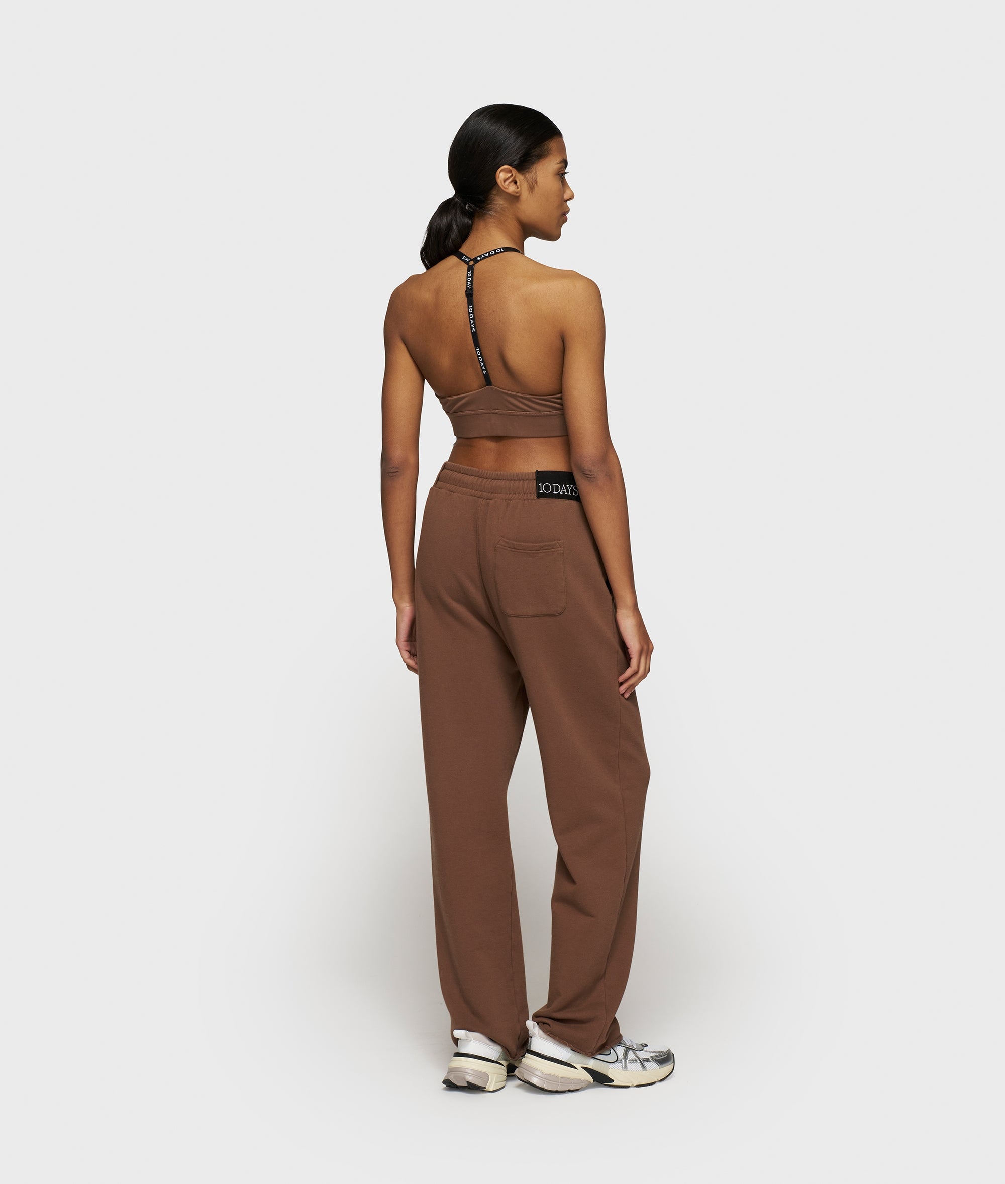 Regular fit mid jogger straight, crafted from soft cotton. Designed with an elasticated waistband with drawstring, slanted front pockets and a single patch pocket at the back. Finished with a raw edge hem, belt loops and a 10′ label at the left side.|