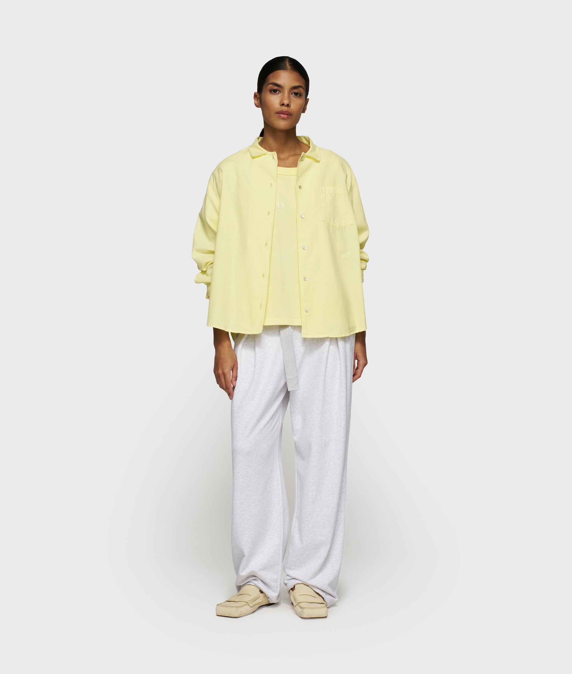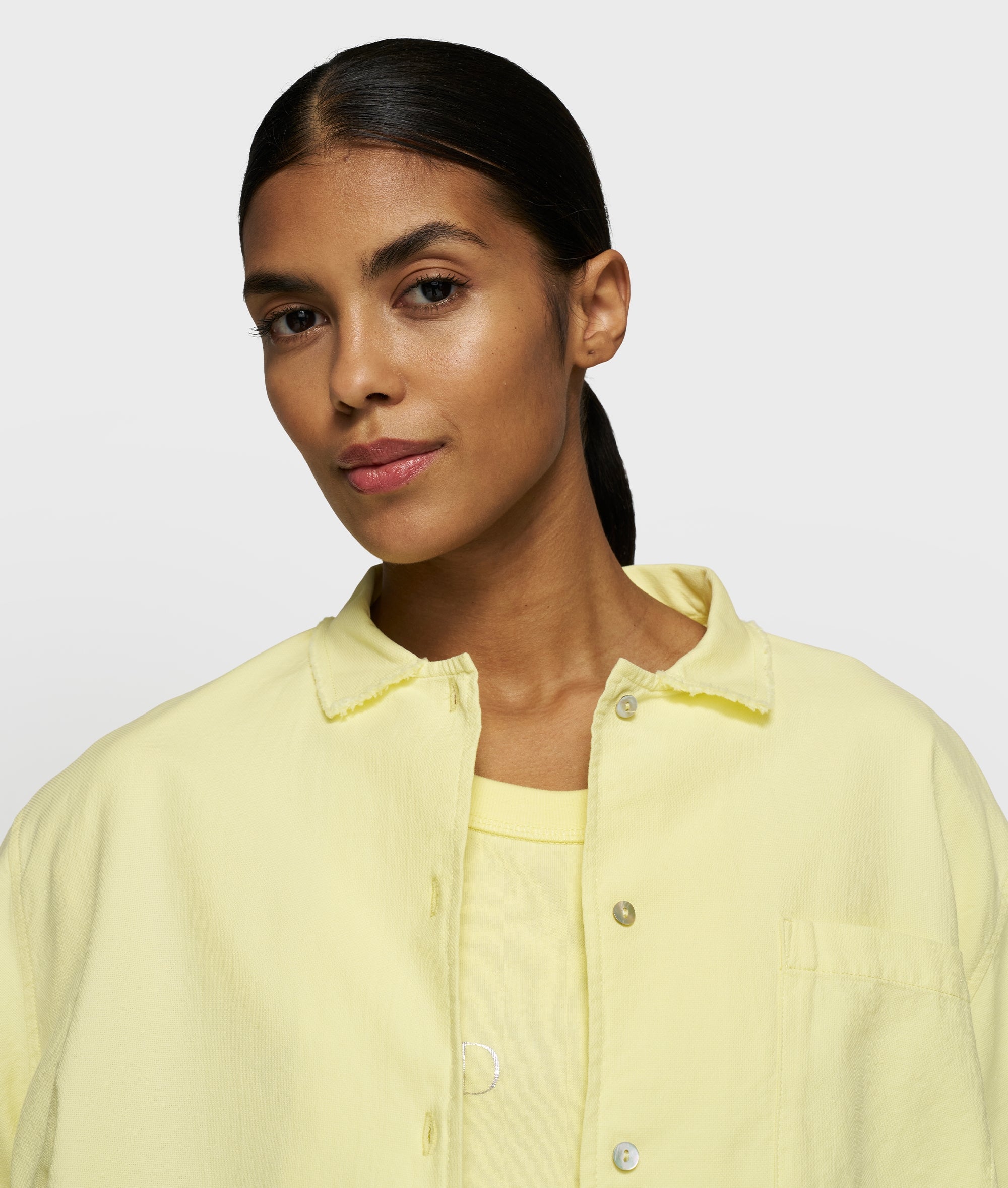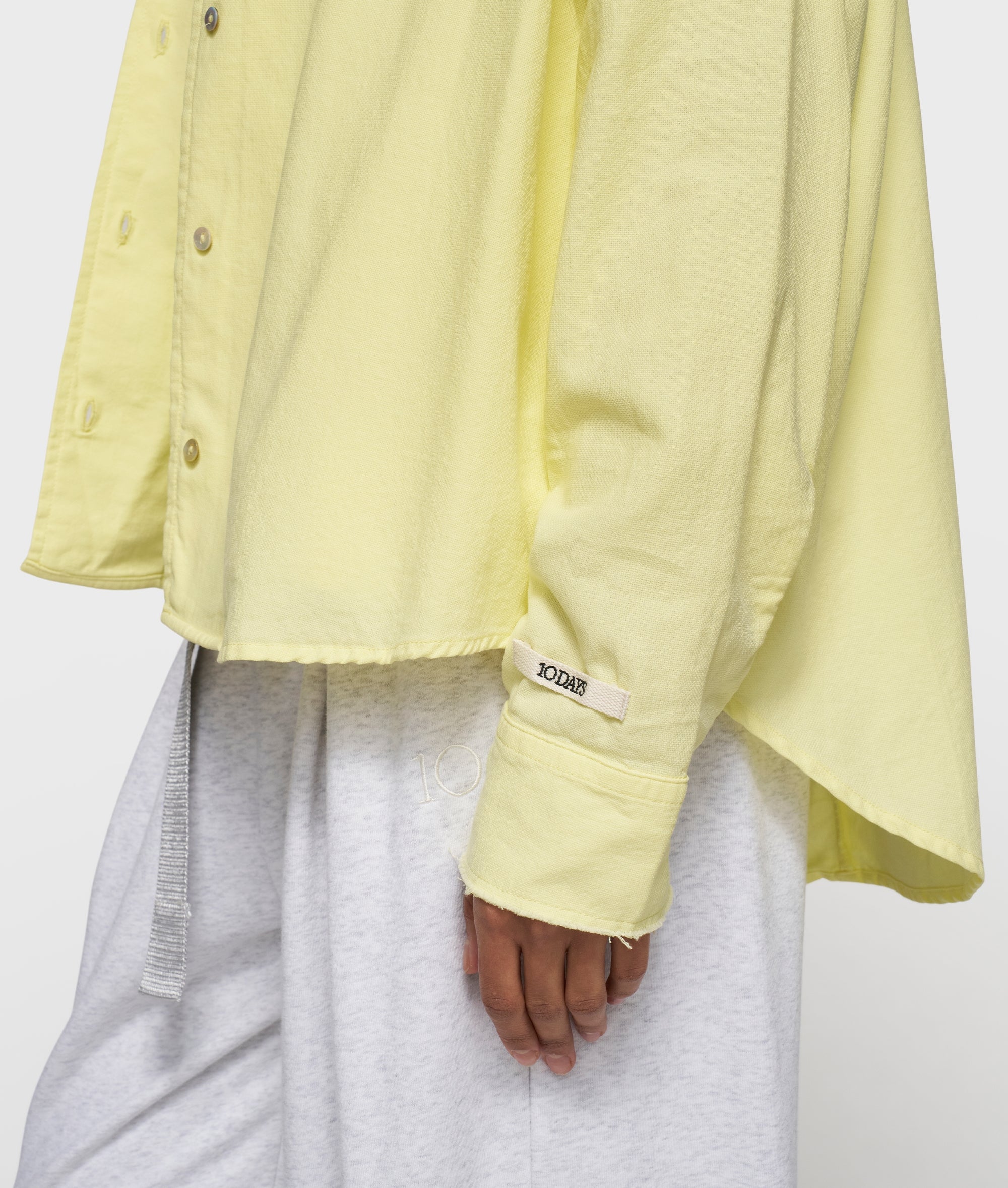 Relaxed fit pique shirt made from GOTS-certified organic pique cotton. Features a patch chest pocket, a raw edge collar with button fastening, a round hem, mini stripes logo embroidery on the back and a 10DAYS label at the bottom of the left sleeve.|