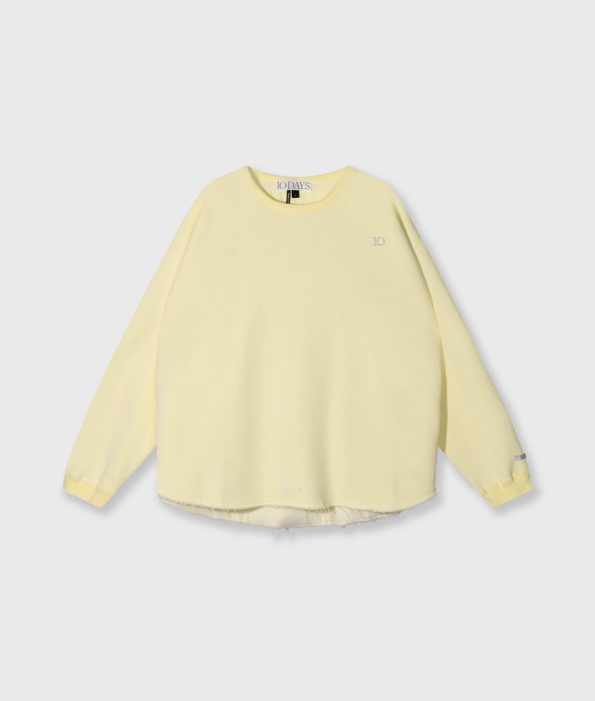 Relaxed fit raw edge sweater made from a soft cotton polyester blend. Features a rib-knit neck and cuffs, a raw edge round hem, a ’10’ monogram embroidery on the shoulder and a label at the bottom of the left sleeve.|