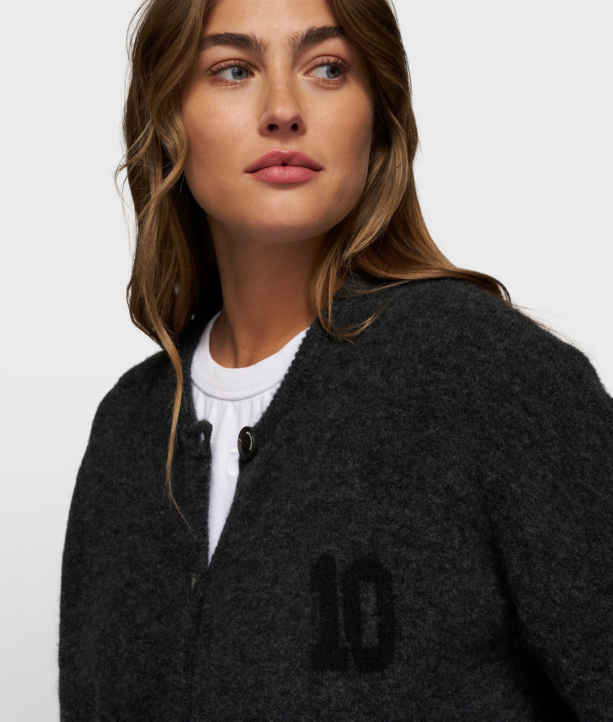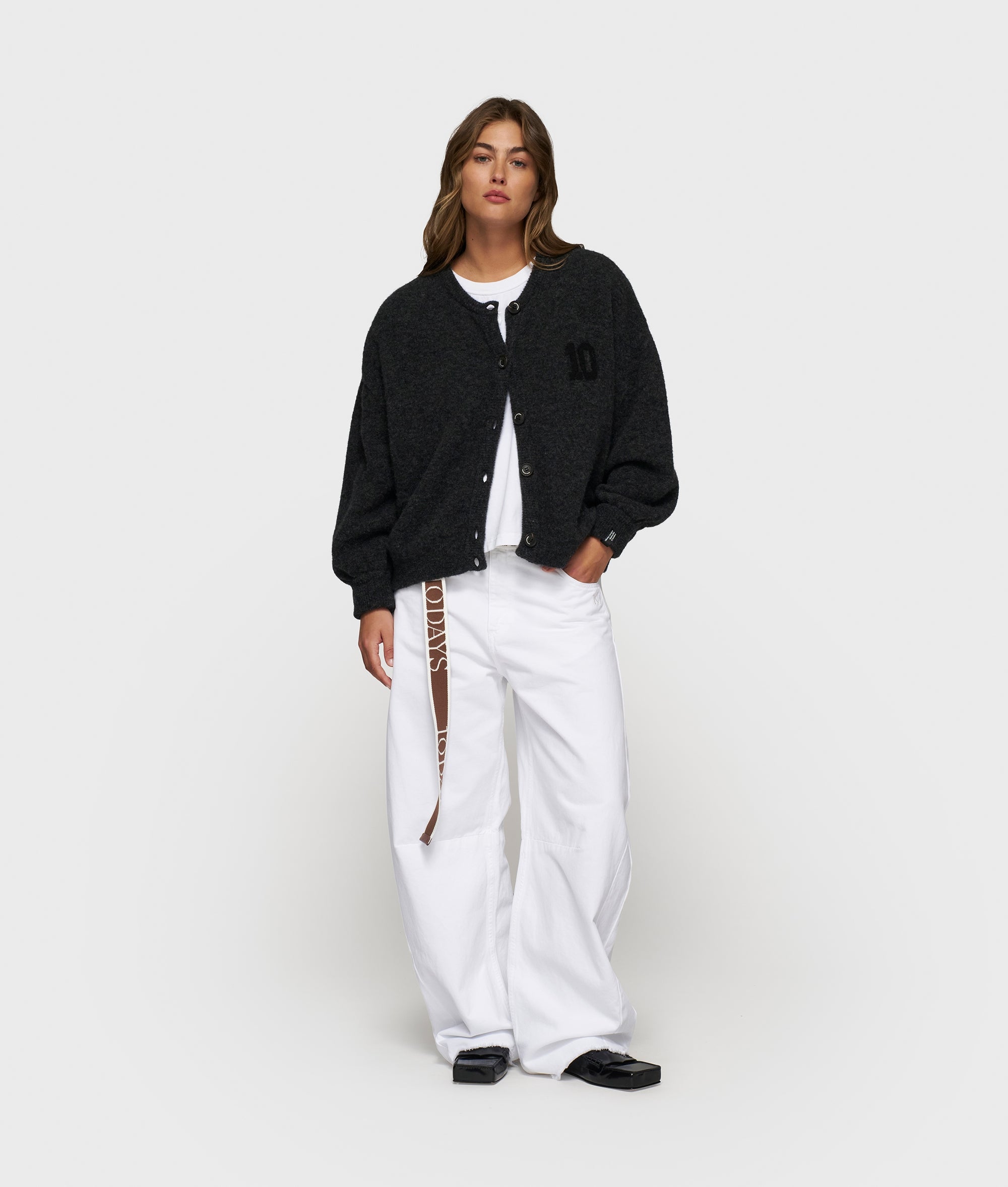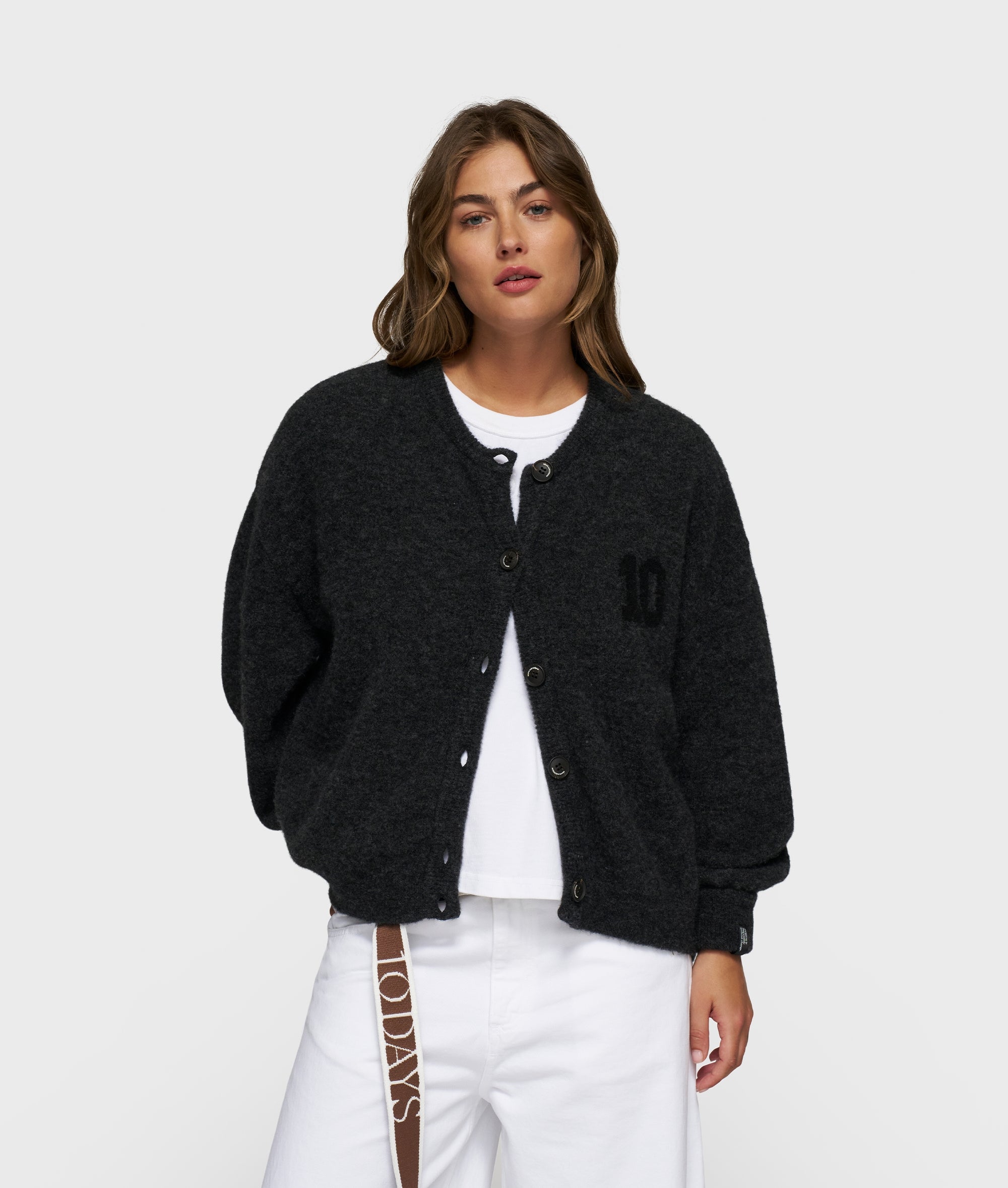 Relaxed fit knitted cardigan, made from a soft alpaca, wool and polyamide blend. Features a button closure, rib-knitted crew neck, hem and cuffs, a tagline label at the bottom of the left sleeve and an intarsia ‘baseball 10’ on the chest.|