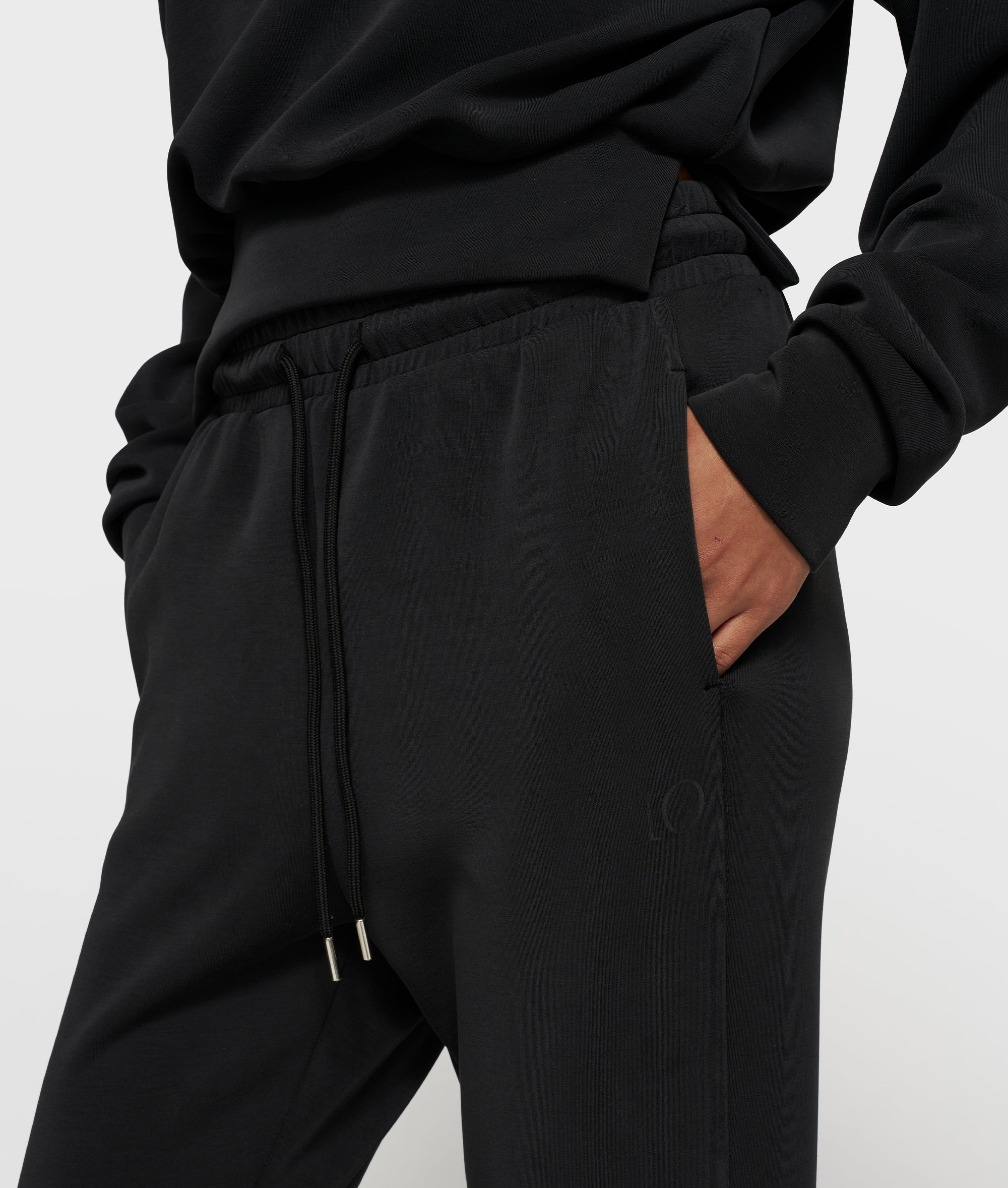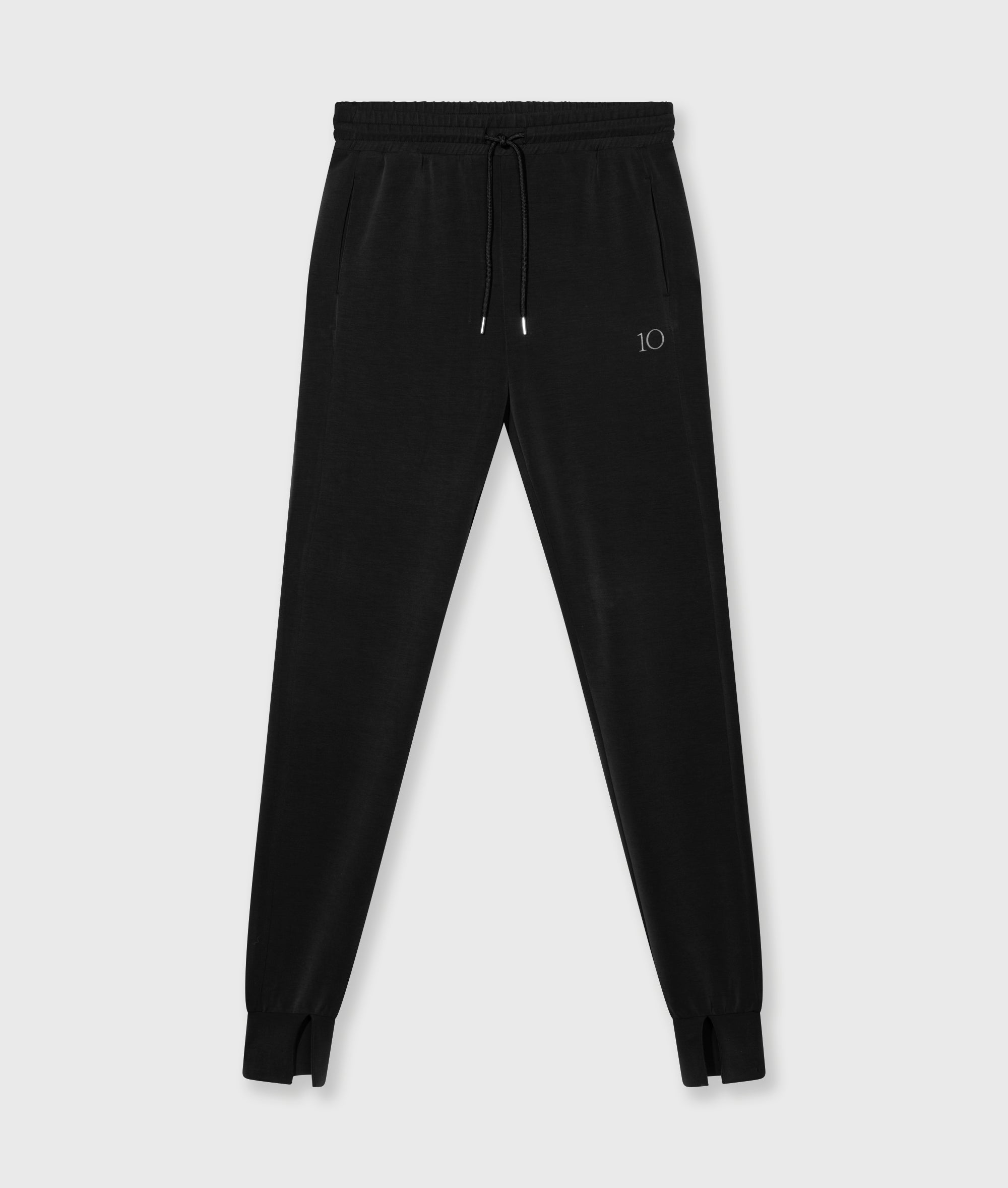 Regular fit jogger in super soft and supple active scuba. Features an elastic waistband with drawstring, side pockets, a ’10’ monogram foil print under the left pocket, a fake back pocket and wide cuffs around the ankles with a front slit.|