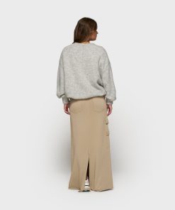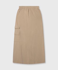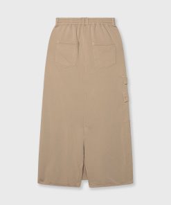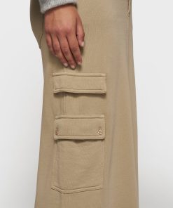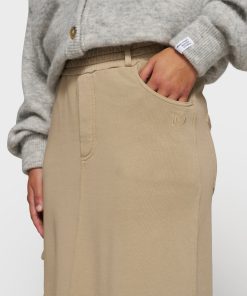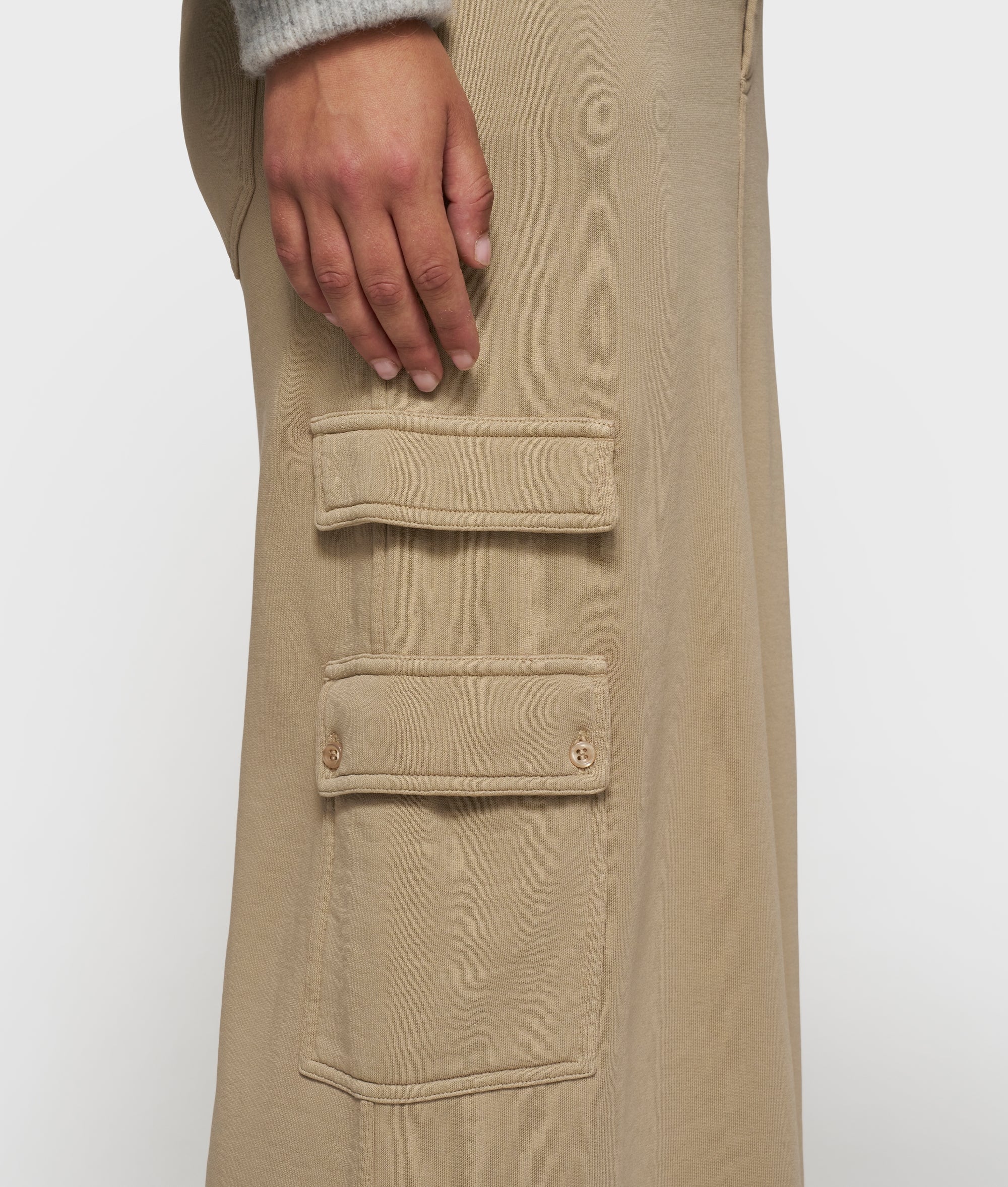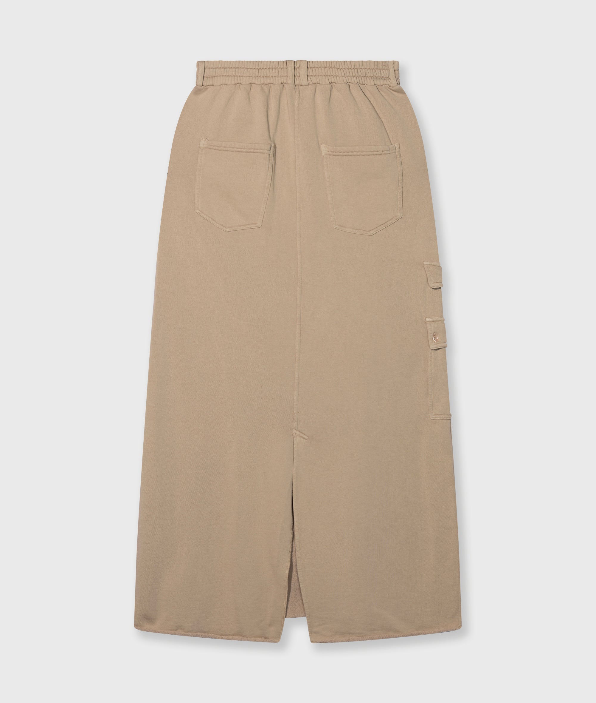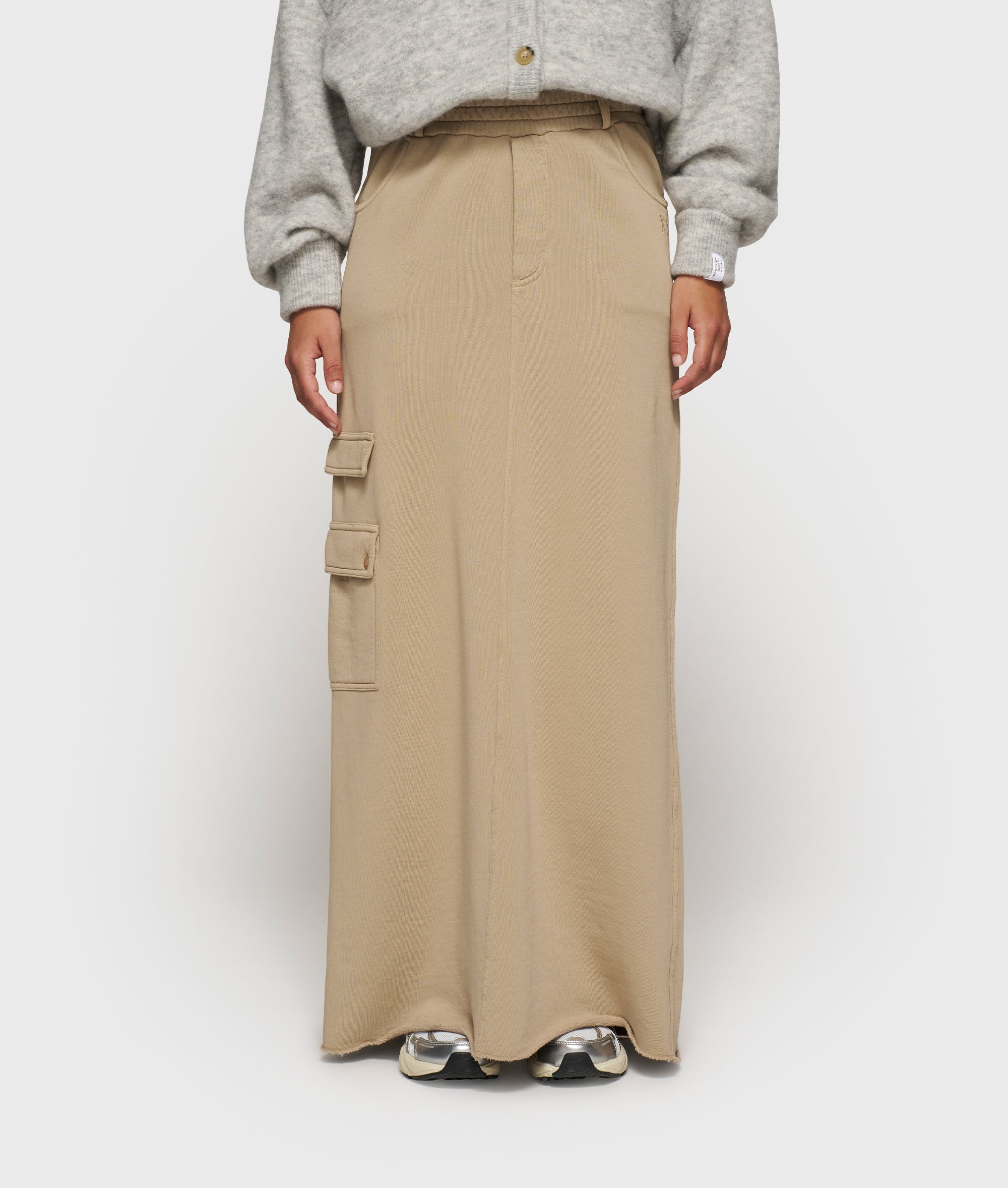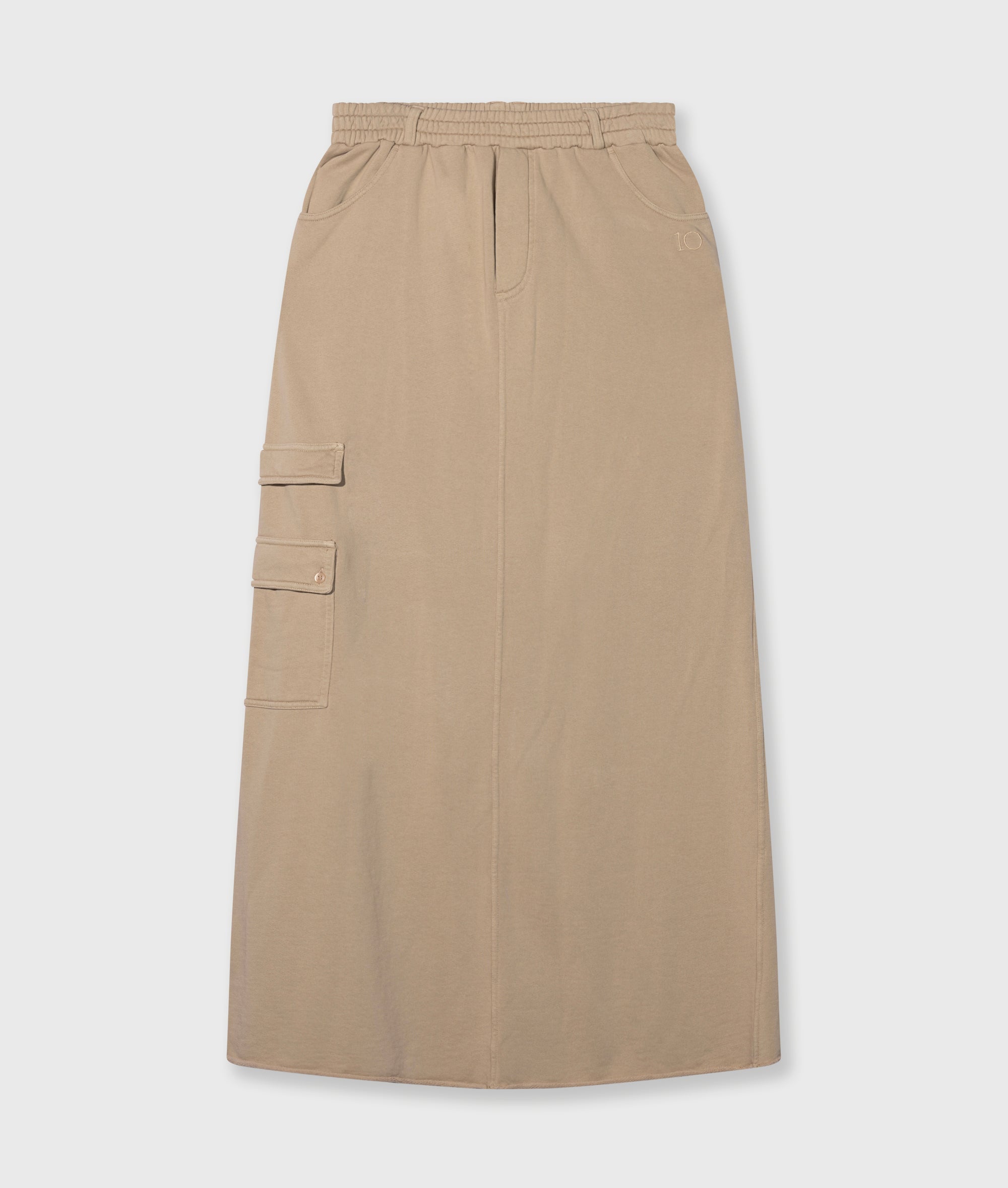 Regular fit maxi skirt, made from GOTS-certified organic cotton fleece. Features an elastic waistband, side pockets, a fake flap pocket on the right side, patch pockets at the back and a ’10’ monogram embroidery below the left pocket.|