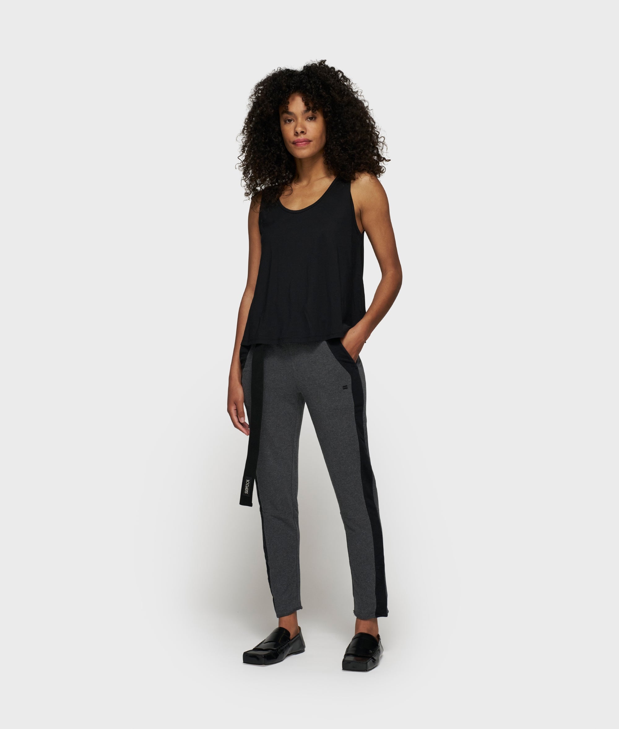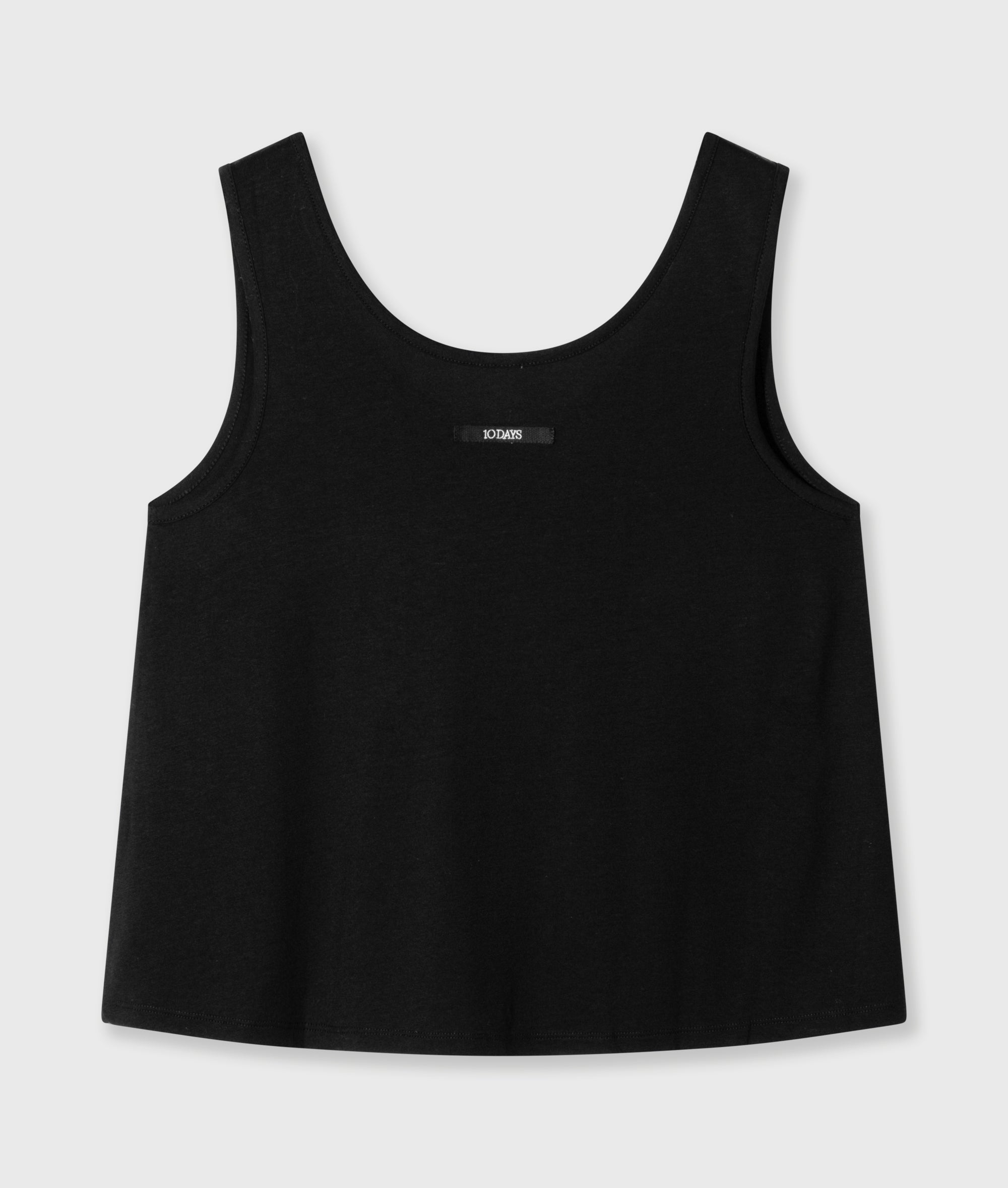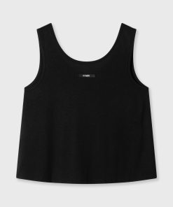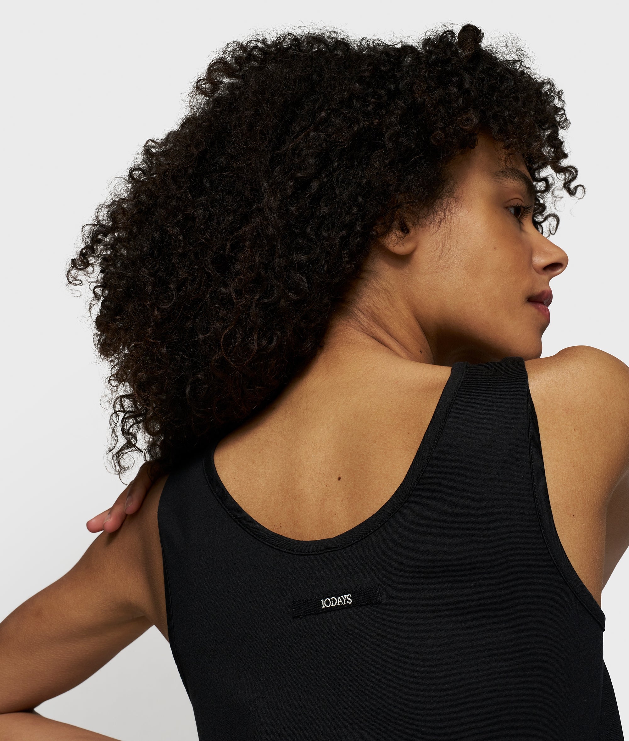 Slim fit tank top made from lyocell jersey. Designed with a round neckline and armholes finished with self-fabric binding. Detailed with a logo label at the centre back below the neckline.|