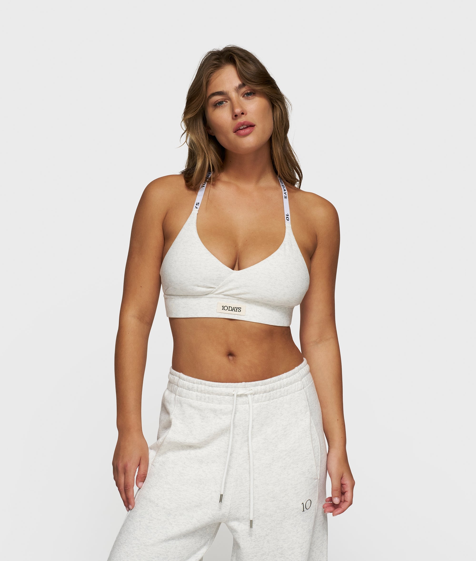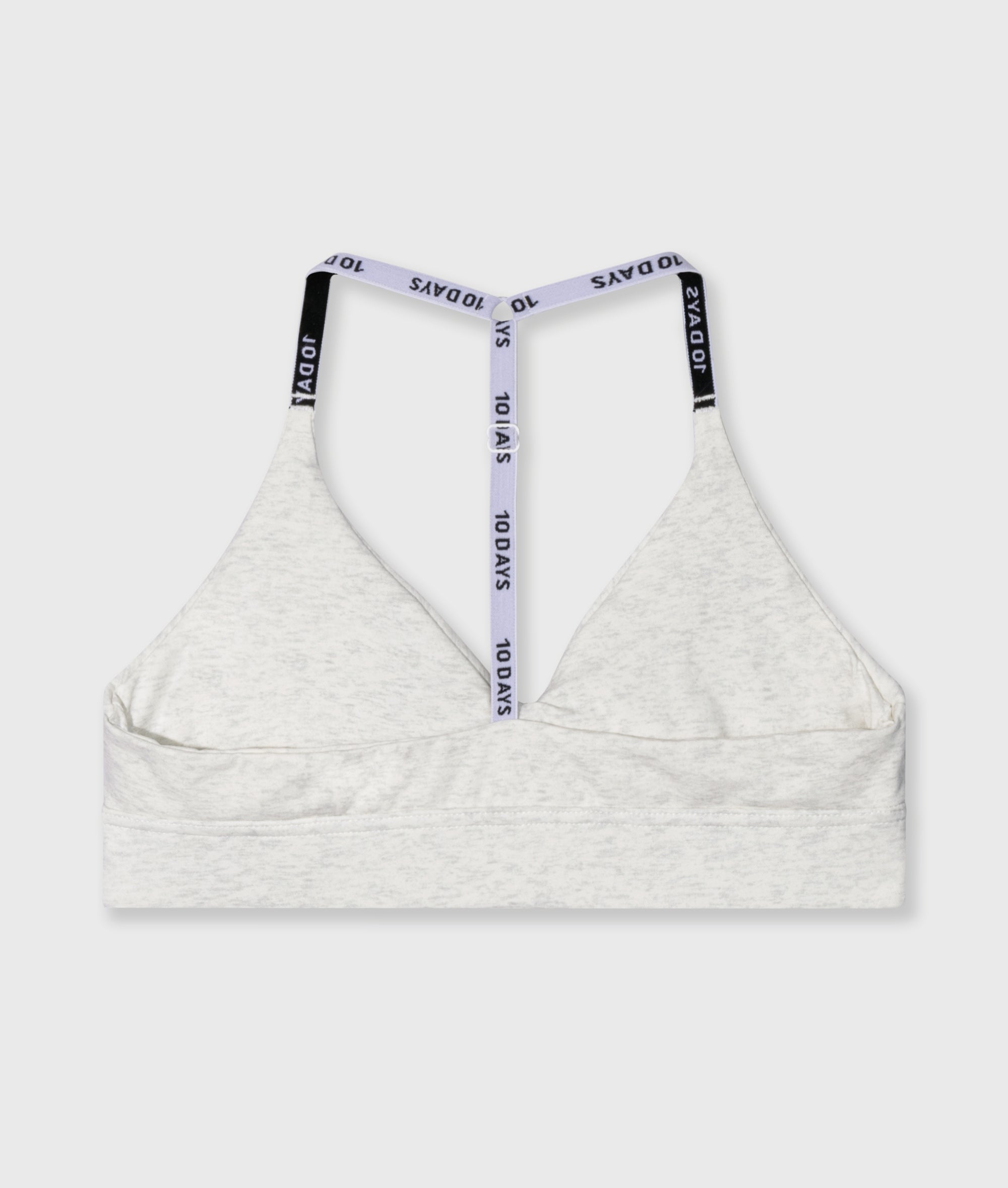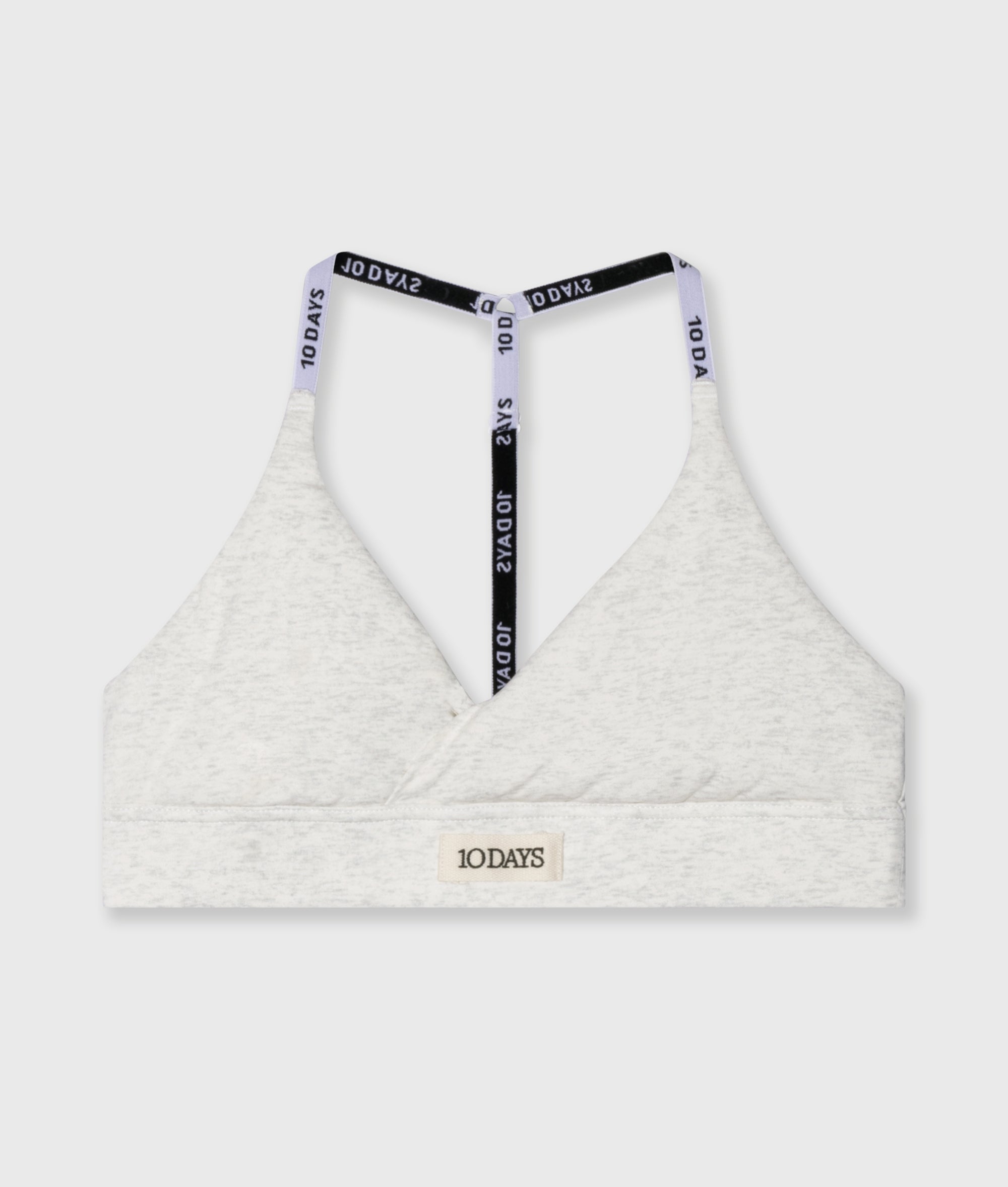 Slim fit Bar Bra made of cotton jersey. Features padded cups, double layer fabric, ’10DAYS’ logo on the front and ‘mini stripes’ logo on the back. The Bar Bra is designed to fit perfectly under a tank top.