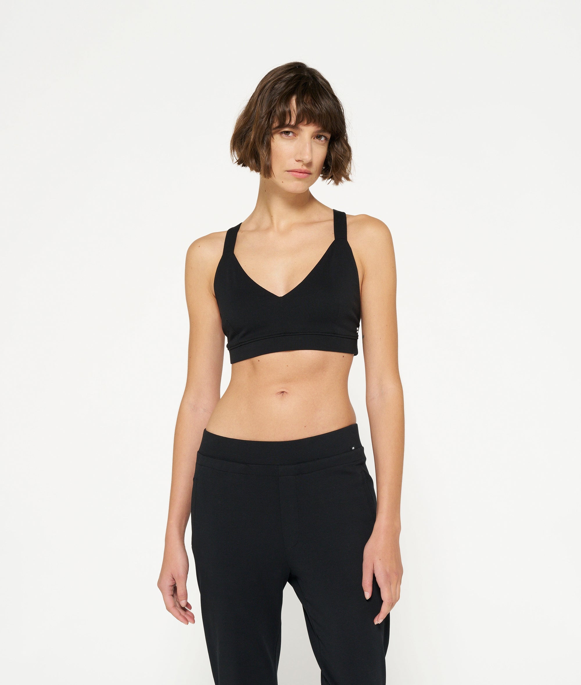 Sporty bra top with crossed straps at the back, made of a organic cotton blend. Features a mini stripes logo and sufficient stretch and support. The perfect fit, both sporty and casual.|