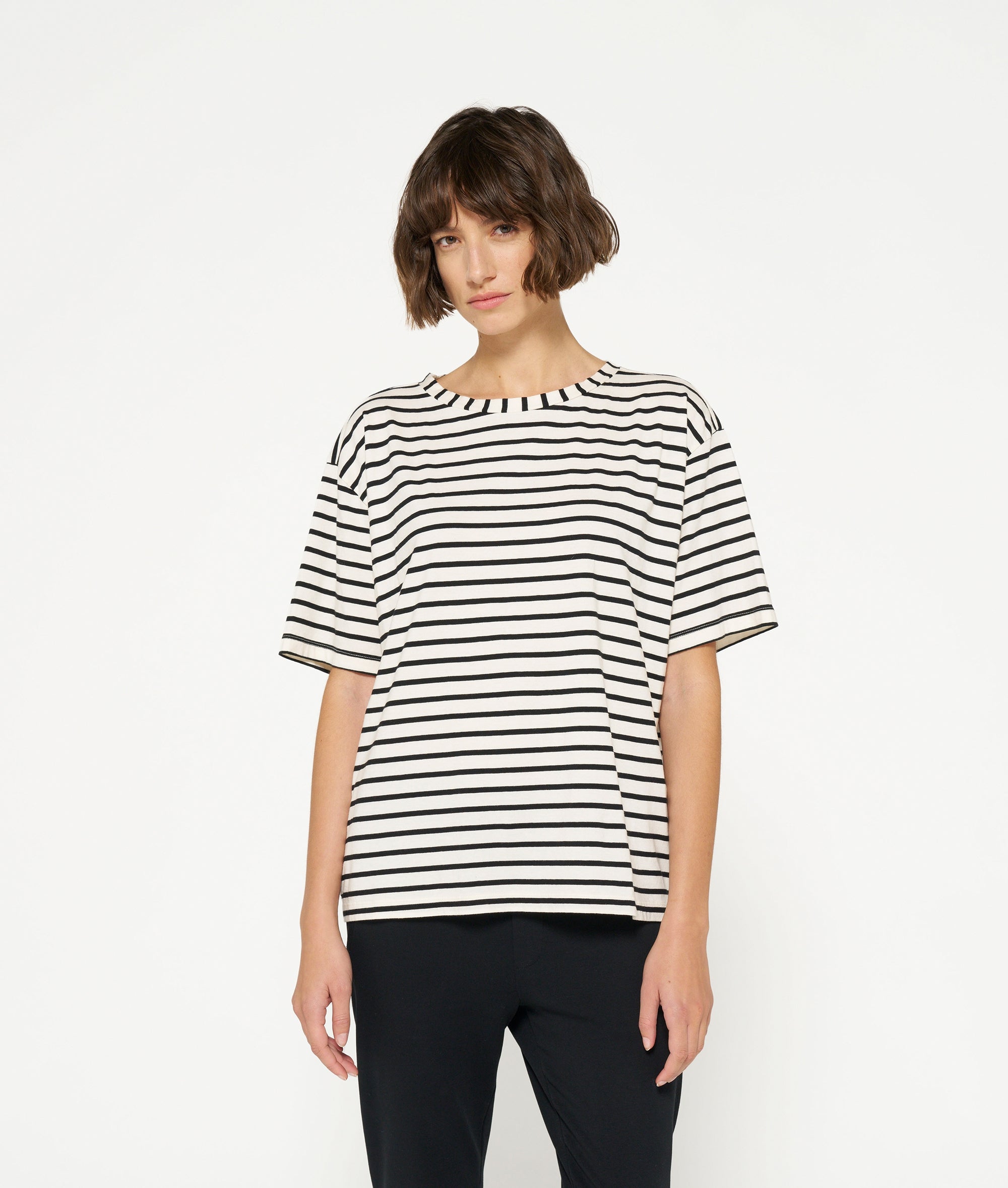 Relaxed fit striped T-shirt made from cotton. Features a round neck, a 10DAYS trim along the left side seam and a small mini stripes label in the right side seam.|