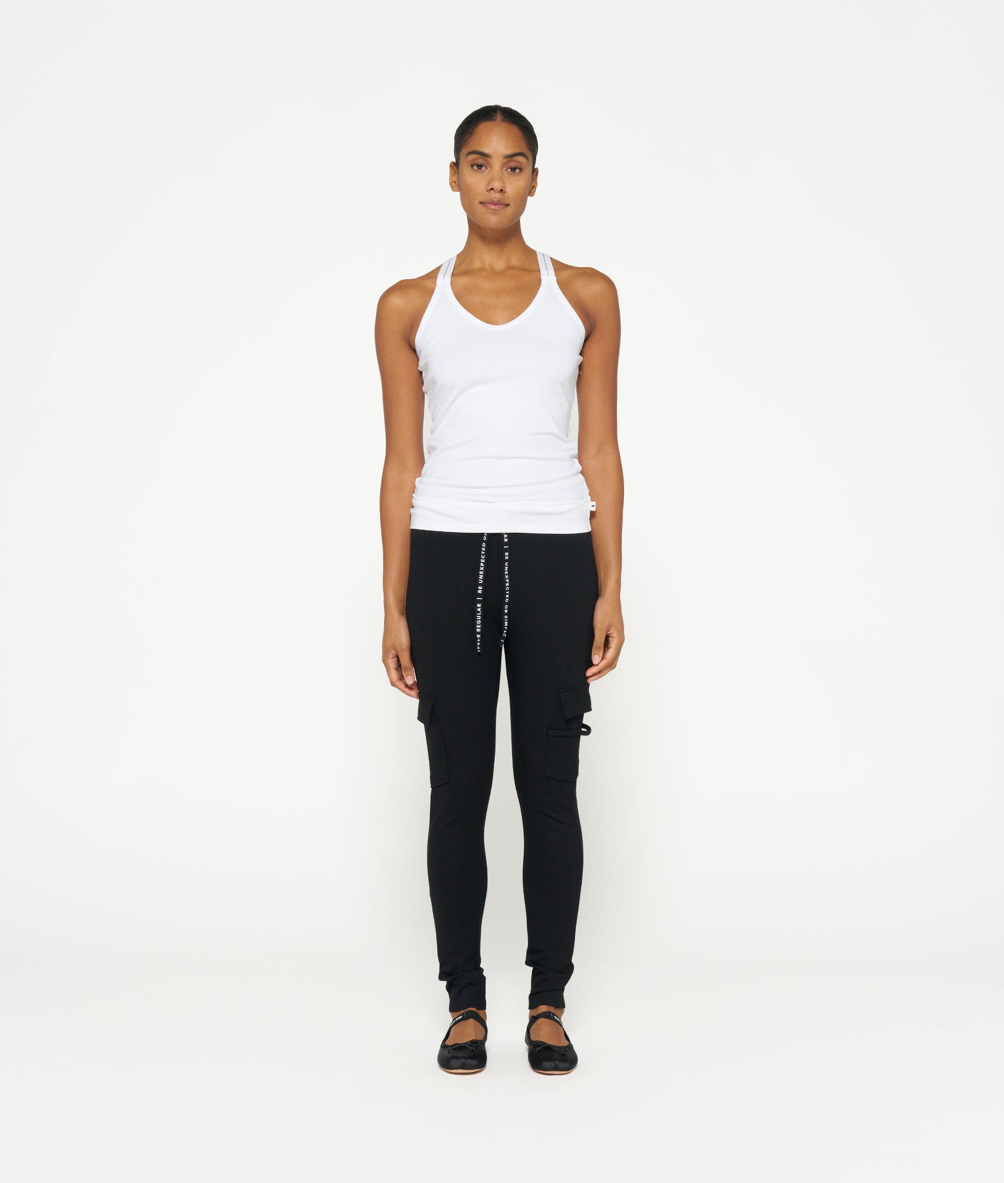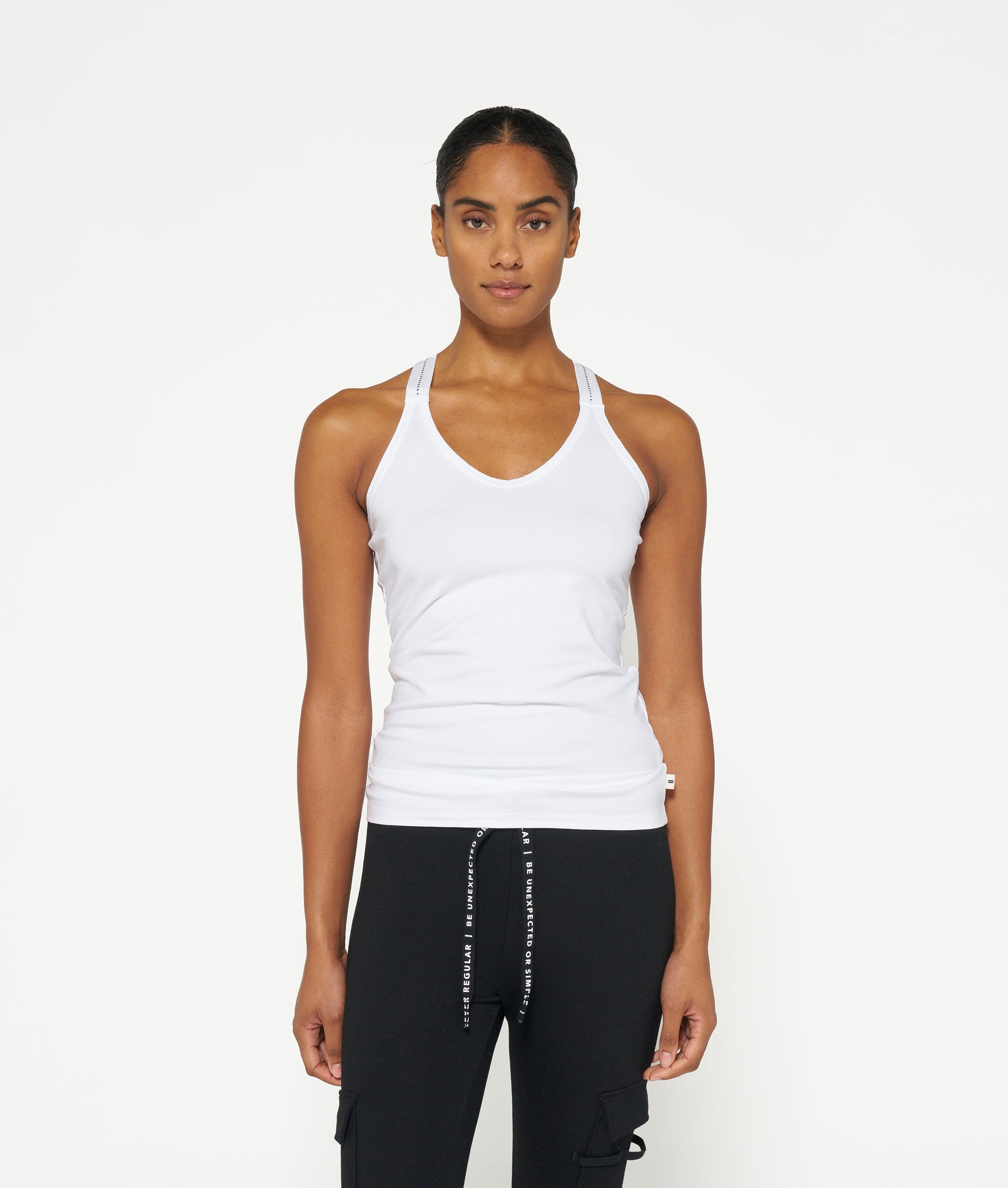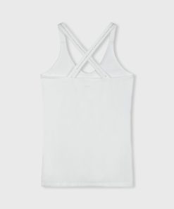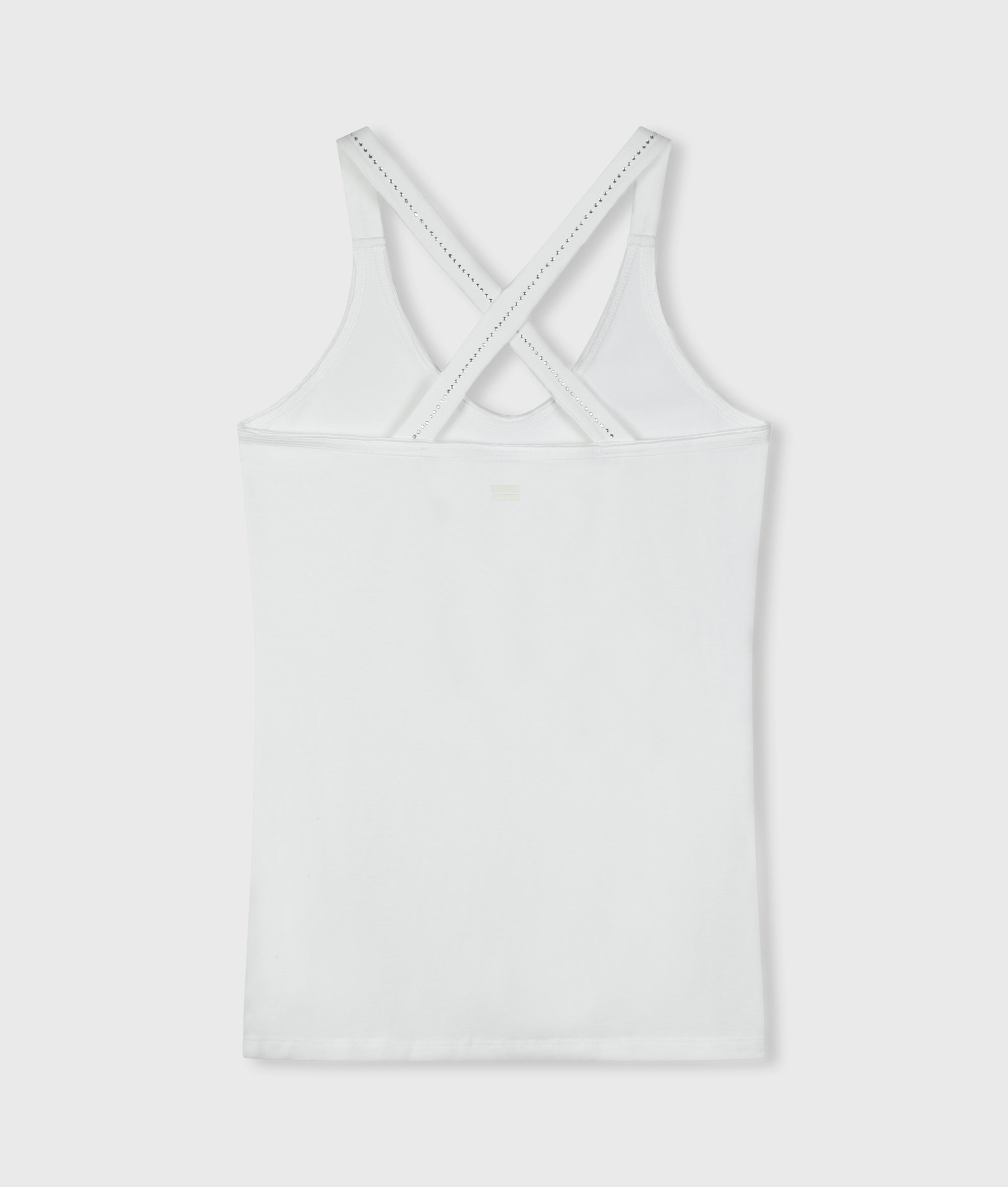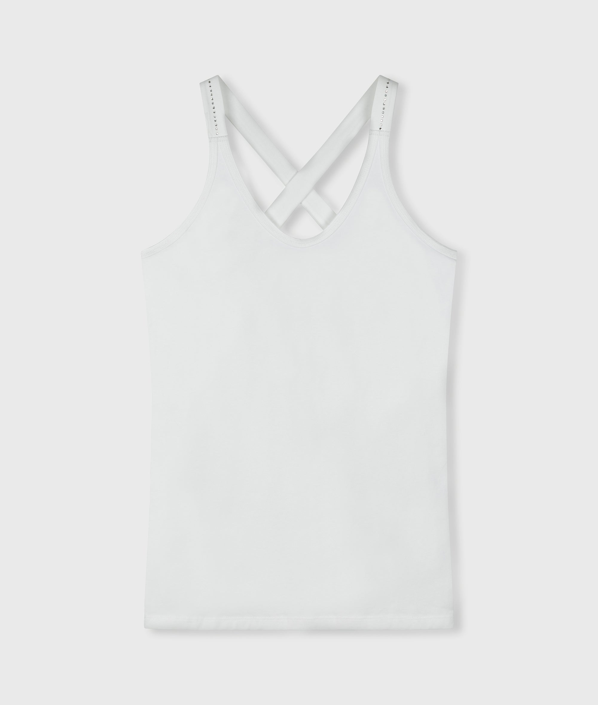 Slim fit singlet top with crossed rhinestone straps at the back, made from organic cotton jersey. Featuring rhinestones on the shoulder straps, a vintage finish around the neck and a mini stripes logo on the back.|