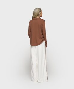 Oversized fit wide leg pants, crafted from soft cotton. Featuring a high waistband with drawstring, slanted front pockets, a faux welt pocket and a deep front pleat. Finished with striped tapes along the side seams, belt loops and the 10′ monogram embroidery on the left side. Note: Due to the use of multiple fabrics, this garment needs extra care after washing. Find more info on how to take care of your garment at the washing instructions.|