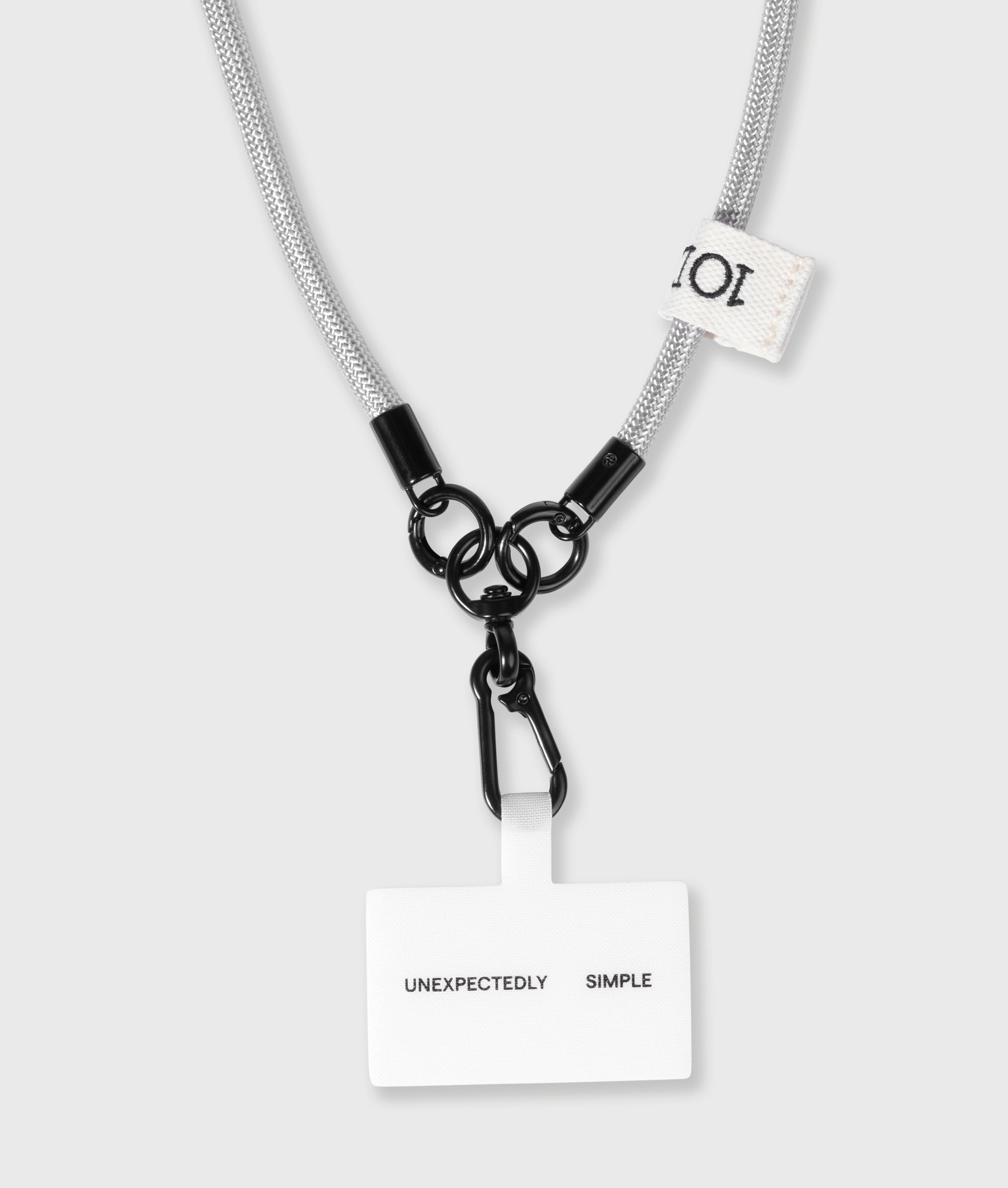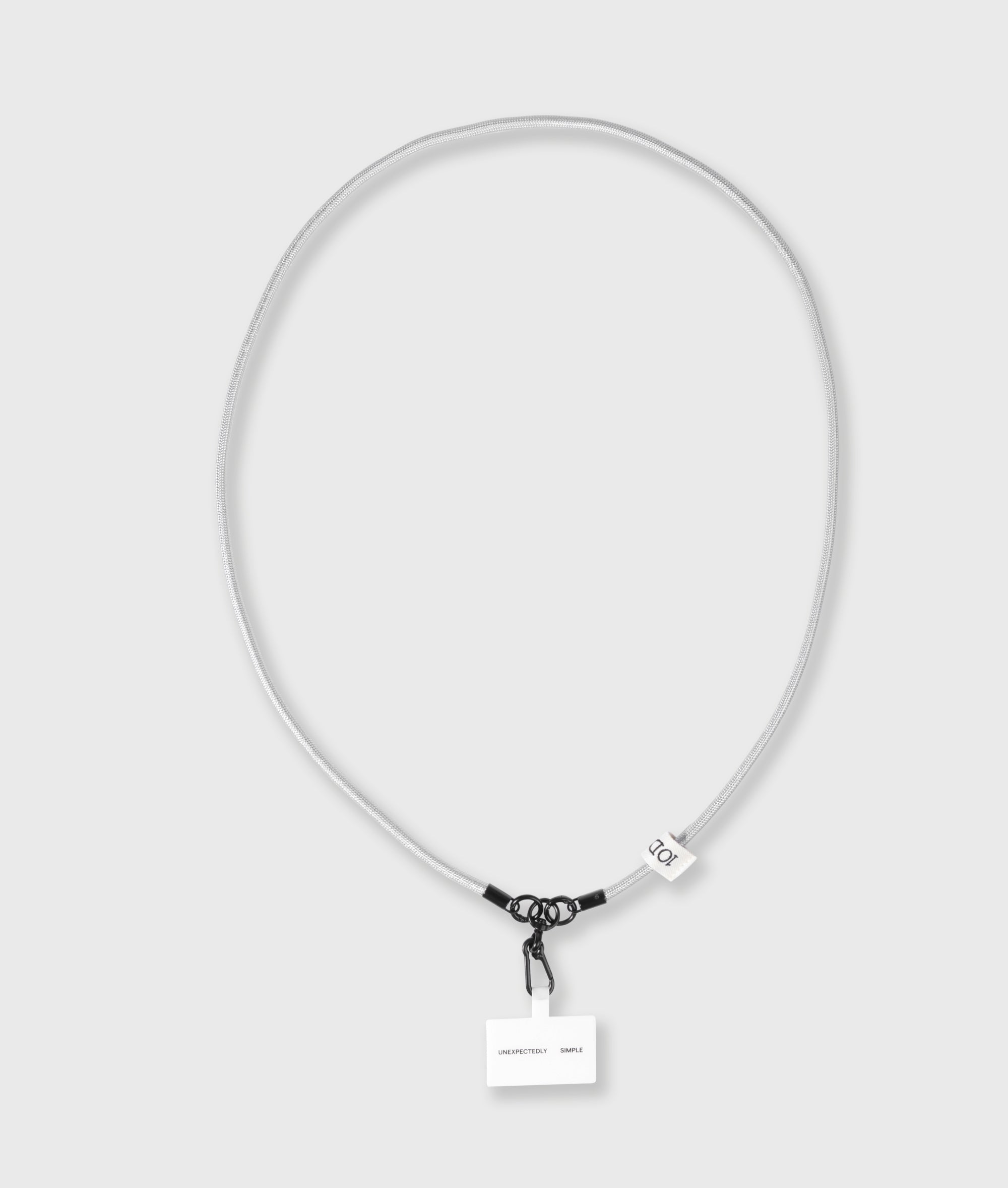Thick phone cord with 10DAYS label. The cord features a card that can be attached to your phone case. Total length phone cord: 128 cm. Size card: 4 x 5.5 cm. The opening of the phone case at the bottom must be at least 1 cm wide.|